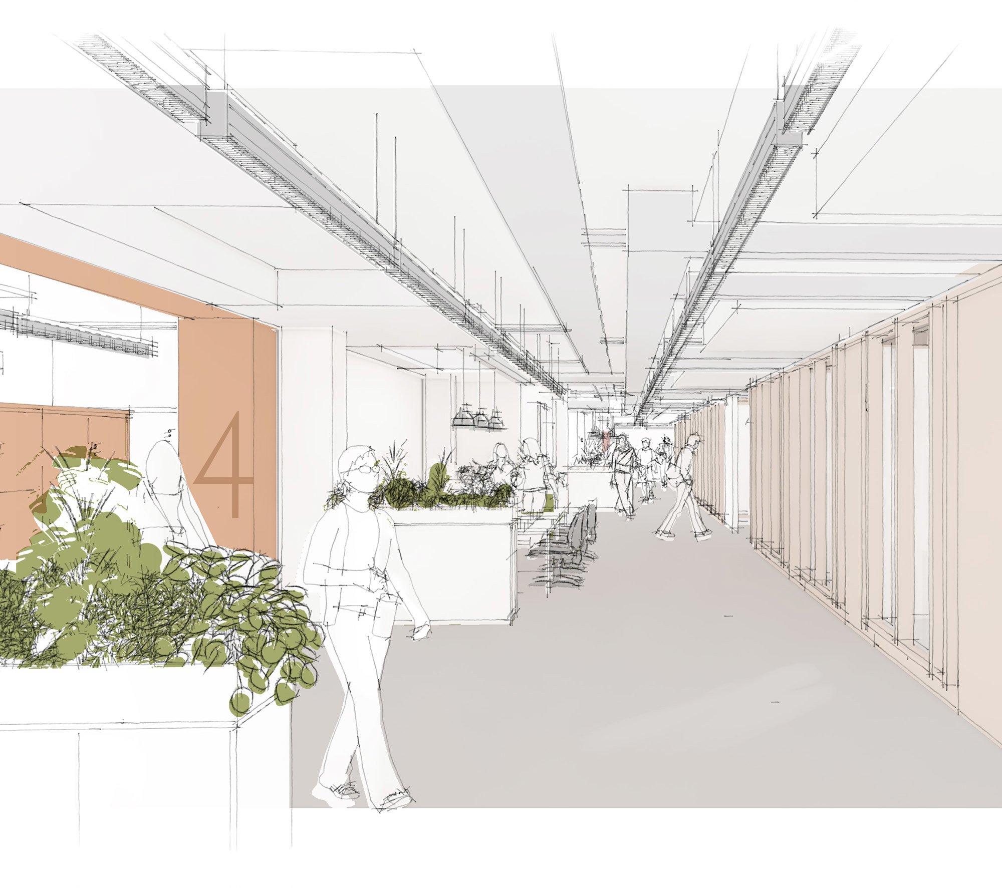 Haworth Tompkins have started work on a retrofit at Kingston University’s main building at Penrhyn Road to provide agile workspace for 120 staff split across four administrative departments. The proposals will see the creation of four workspace 'neighbourhoods' accessed via a central 'high street' containing a series of bookable meeting rooms, individual workrooms and a mixture of social spaces. The design has been developed collaboratively as a pilot project to meet the requirements of the post-pandemic office, with a focus on people, processes, connectivity and technology to support more flexible working patterns.