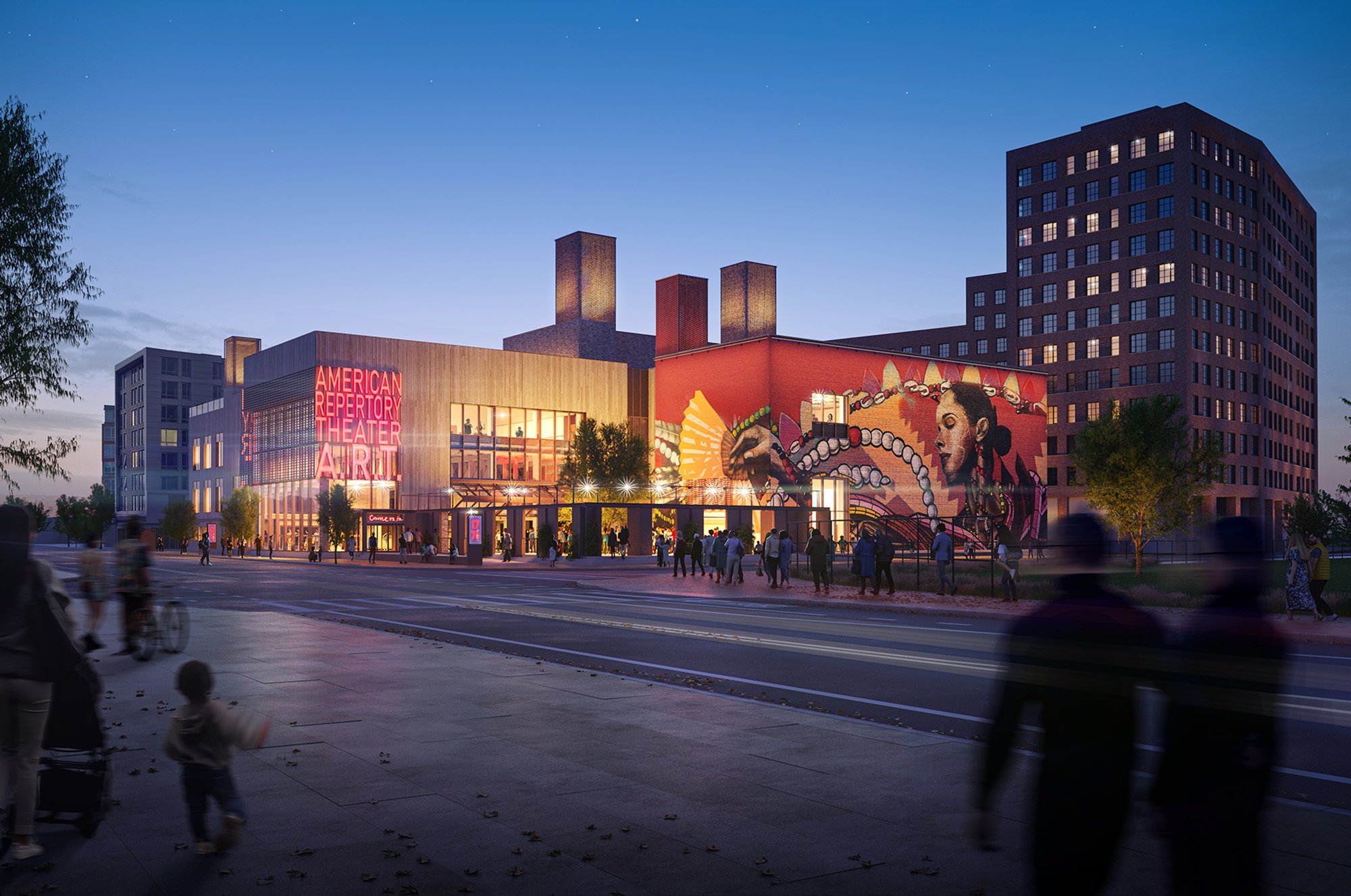 The A.R.T.’s new home has been conceived and will be programmed to center community. It will be open to all during designated hours of operation, offering free Wi-Fi, food and beverage service, public restrooms, gathering spaces, indoor and outdoor public art and performance, and room rental opportunities. Designed with a blend of environmental and social strategies to minimize embodied and operational carbon, maximize wellbeing, boost biodiversity, and enhance resiliency, the David E. and Stacey L. Goel Center for Creativity & Performance embraces Harvard’s ambitious sustainability priorities. The building is designed to achieve the Living Building Challenge core accreditation from the International Living Future Institute in recognition that it gives more to its environment than it takes.