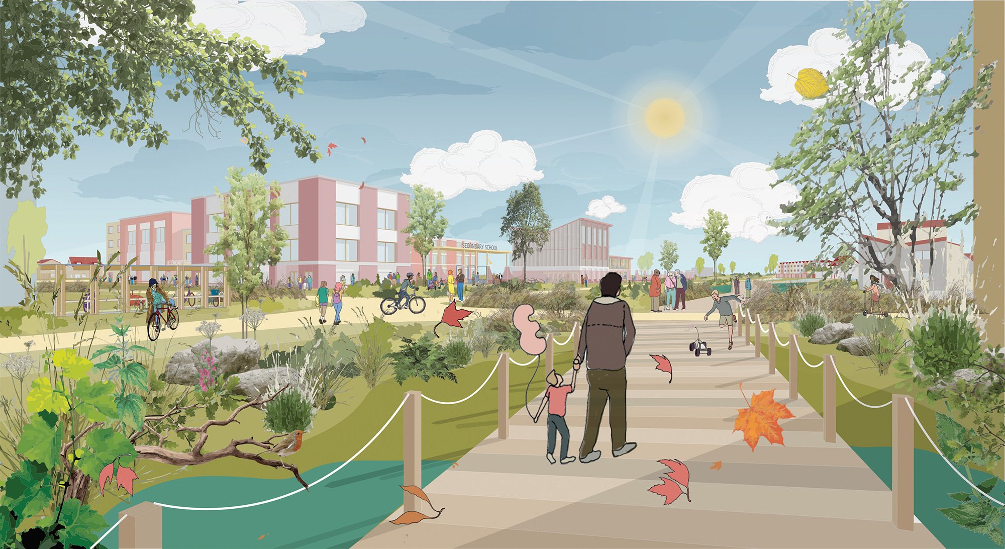 A major milestone has been reached with the submission of planning for the Tendring Colchester Borders Garden Community in Essex for our client Latimer by Clarion Housing, with Haworth Tompkins leading the collaborative design team.