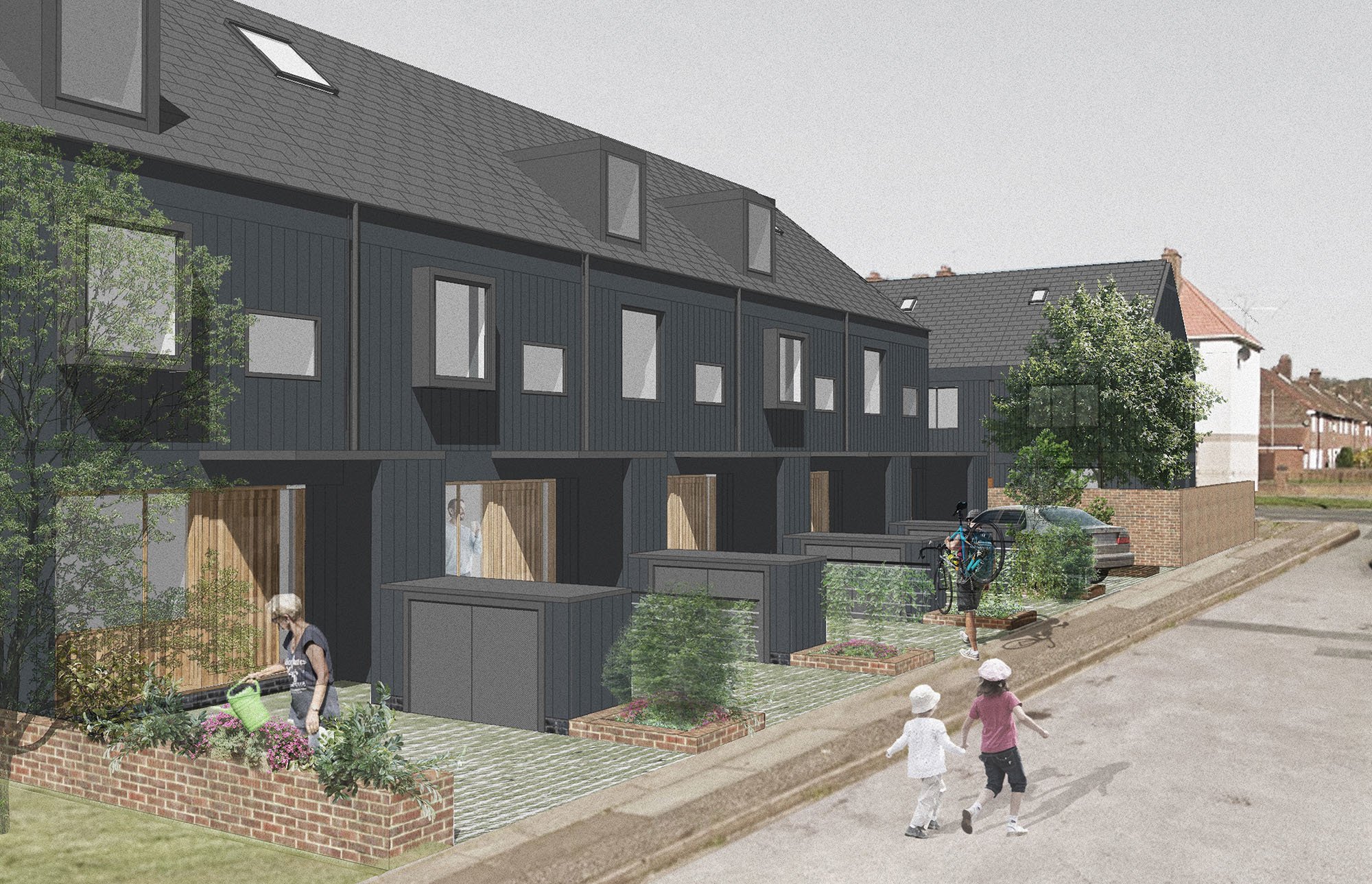 A development of 19 terraced houses in Baycliff Road, Liverpool, designed by Haworth Tompkins for Osco Homes gained approval from the LCC planning committee at its meeting on 28 August 2018. The project is a cost-effective alternative to traditional construction, with the houses manufactured off site as pre-fabricated modular externally finished cassette panels. The panel system is assembled on site, in approximately 12 hours per unit, saving time on site and reducing the requirement for temporary access. Flexibility and the possibility of end-user customisation are central to the project, this manifests itself as a standardised core with interchangeable plan and elevation options – including a dormer or Velux window type to improve utilisation of roof spaces.