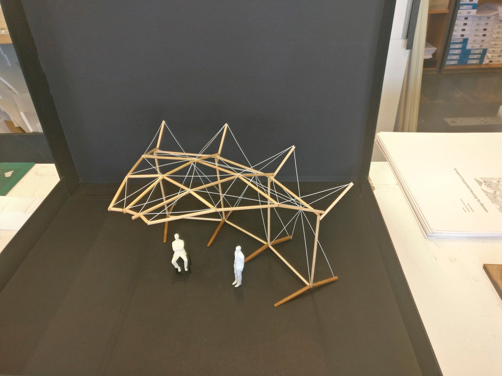 The Den, our nomadic theatre auditorium for the Manchester Royal Exchange, has been shortlisted for a Wood Award. Materials are recyclable or compostable, designed for minimal environmental impact. The structure is a slender larch and hemp rope frame, so light that it requires no foundations. Fixings are simple and exposed and the entire structure can be dismantled, transported and rebuilt within a week. The awards will be announced later this year.