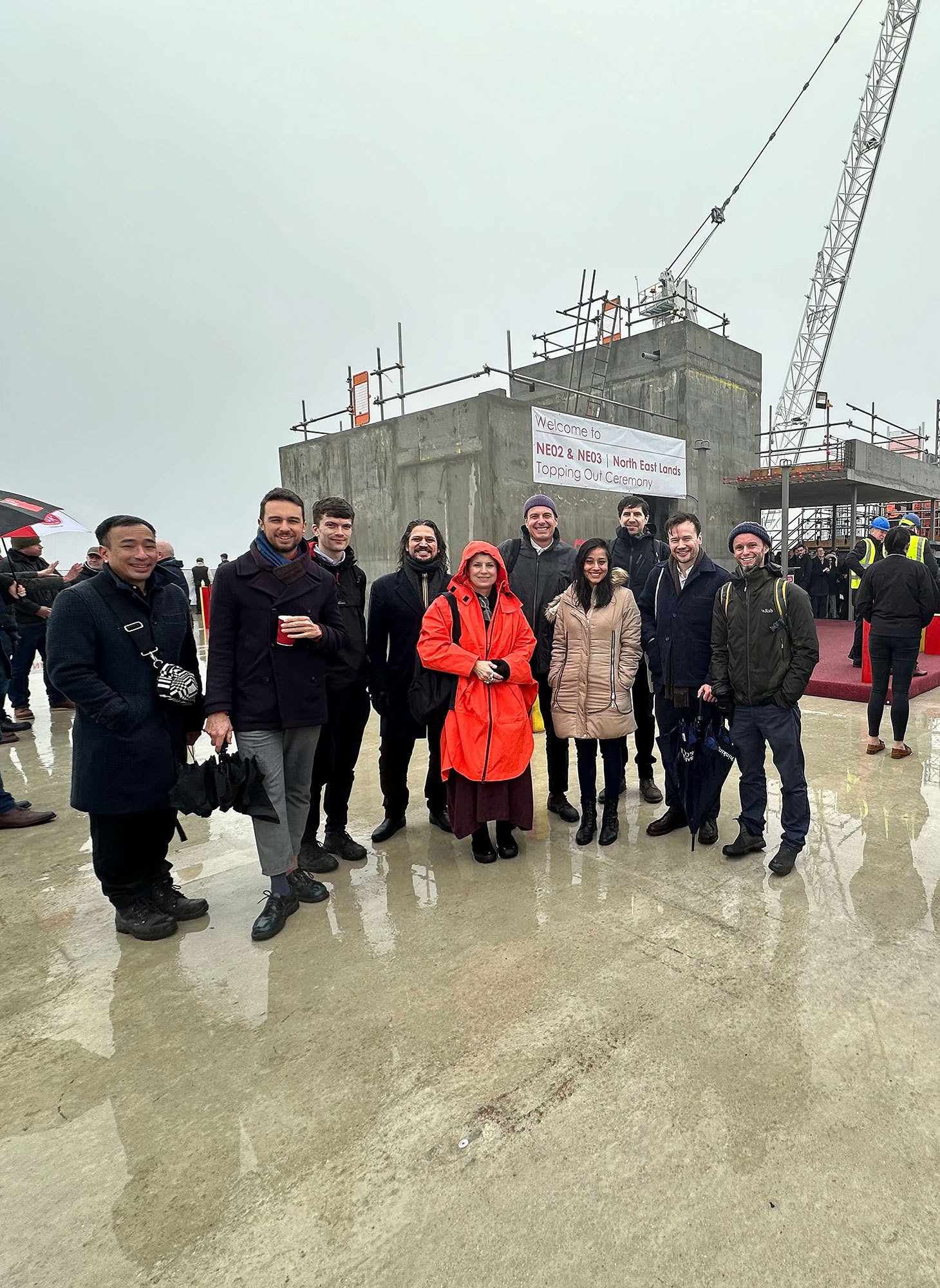 The Haworth Tompkins team recently gathered to celebrate the completion of the superstructure at Wembley NE02/NE03 with a topping out ceremony. A big thank you to client Quintain and John Sisk & Son Ltd for hosting us – it was a brilliant event for the whole project team to mark the fantastic achievement in bringing these projects to fruition.