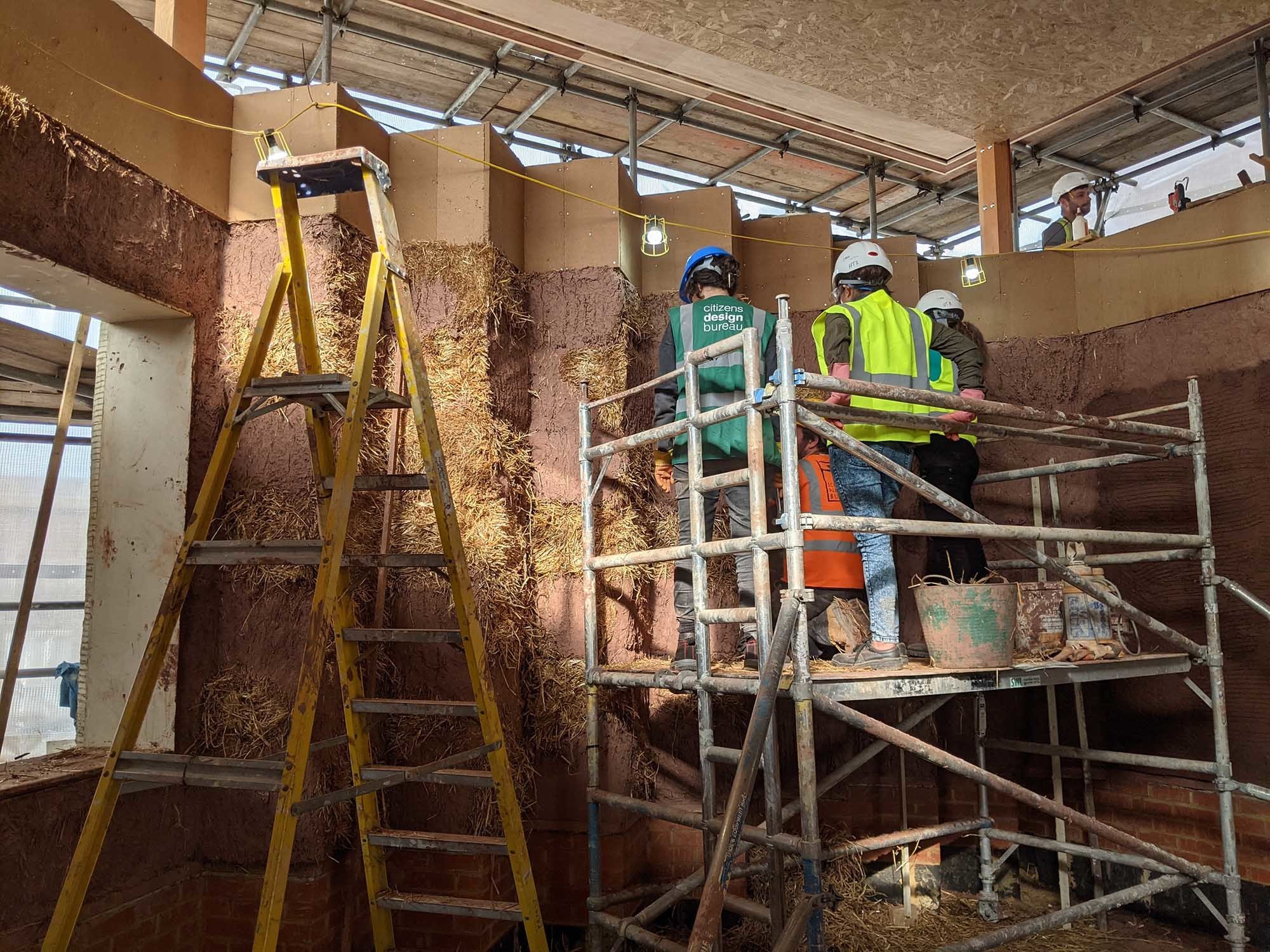 HT studio members Alex Johnstone, Aneesha Irika and Diana Al-laham spent the day volunteering with Citizens Design Bureau on the construction of their Studio 3 Arts project in Barking. Haworth Tompkins support the volunteering process by offering an annual day of leave to everyone undertaking similar schemes, either inside or outside of the architectural sphere. Members of the public are involved in this particular community project to help build an extension to the centre, by laying the straw bales that form the walls. With instruction from the School of Natural Building, this was an excellent way to learn about alternative methods of construction, and building with natural materials.