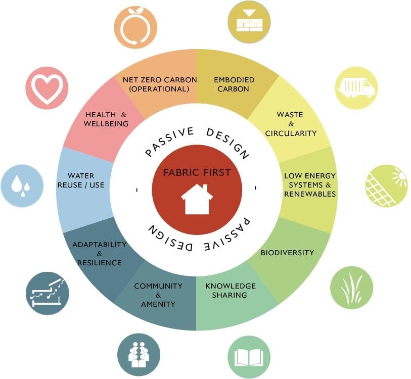 Regenerative Practice The idea of regenerative practice now underpins all of our thinking as a studio. It seeks to go beyond traditional ideas of sustainability by framing the role of architecture within the wider ecosystem: to meet society’s need for buildings without breaching planetary boundaries. As founding signatories of the environmental movement Architects Declare and the RIBA 2030 Challenge, we now have a growing number of exemplary projects in development in the UK and internationally and are keen to work alongside clients who share our vision. We have found that a building project can also be an opportunity for us to help organisations re-evaluate their own purpose and mission in the face of the planetary emergency. To support this, we have four in house qualified Passivhaus designers and offer embodied carbon assessments, life cycle assessments for BREEAM accredited projects and Post Occupancy Evaluations amongst other related services.