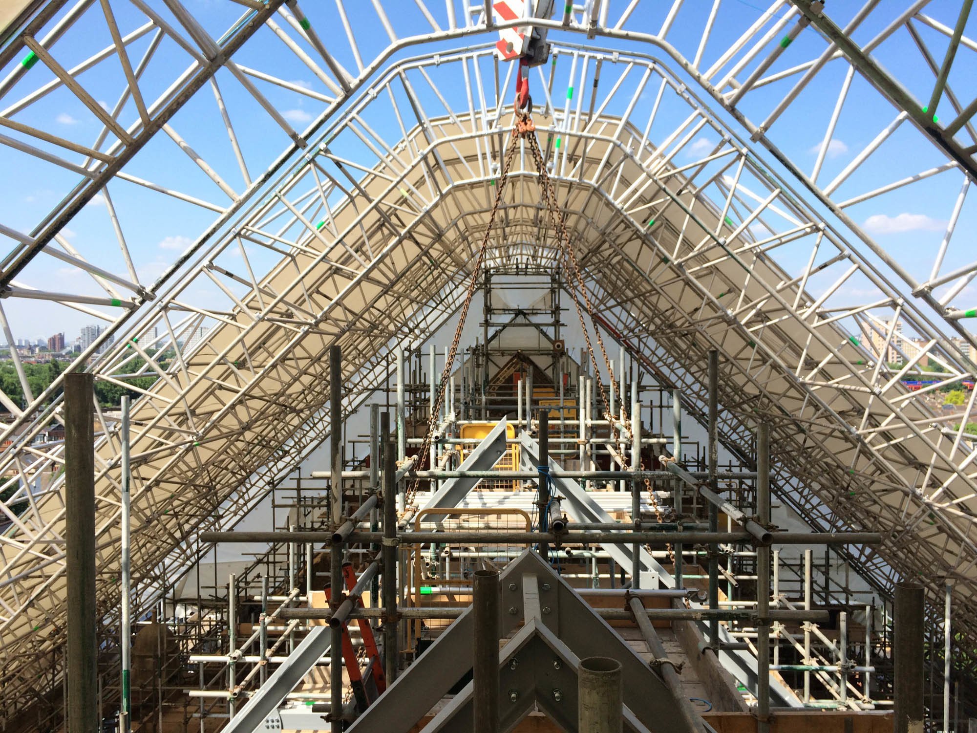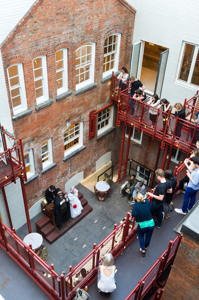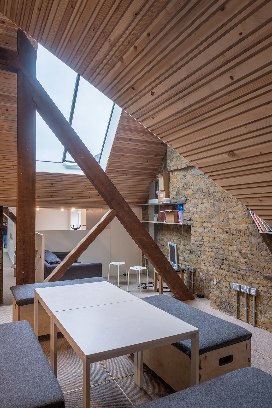 Following a period of experimentation, a brief for more permanent work was developed. These projects include the creation of a new public outdoor courtyard performance space by selectively stripping back and patching in a disused light well, and the conversion of unused attics and rooftops for the organisation’s offices and garden.