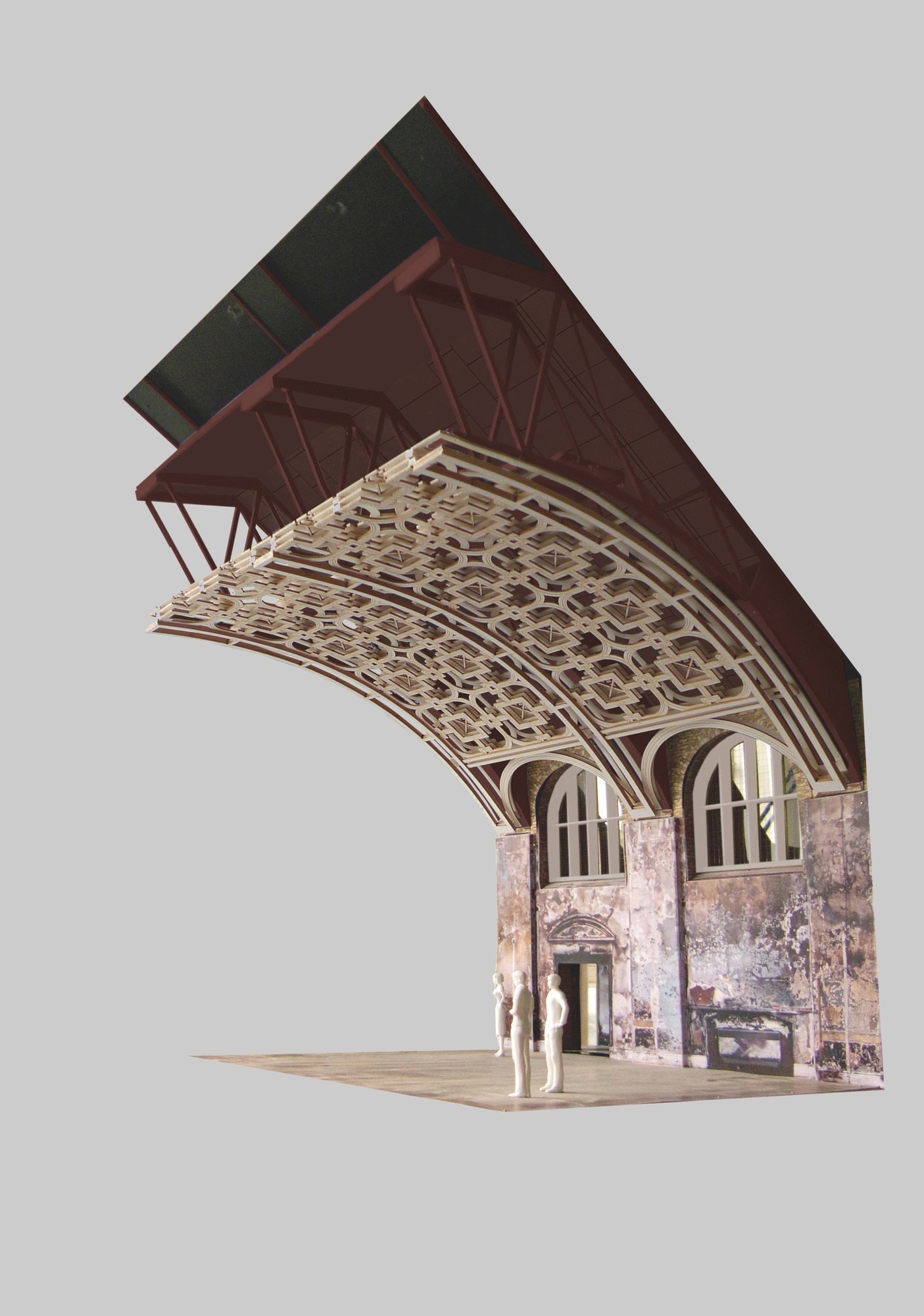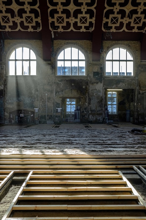 Drawing on the existing richness of the building and patterns of use by artists, a number of improvised, non-invasive alterations were made alongside specific productions - such as Punchdrunk’s Masque of the Red Death - to test strategies for change and to evolve a playful but rigorous architectural language.