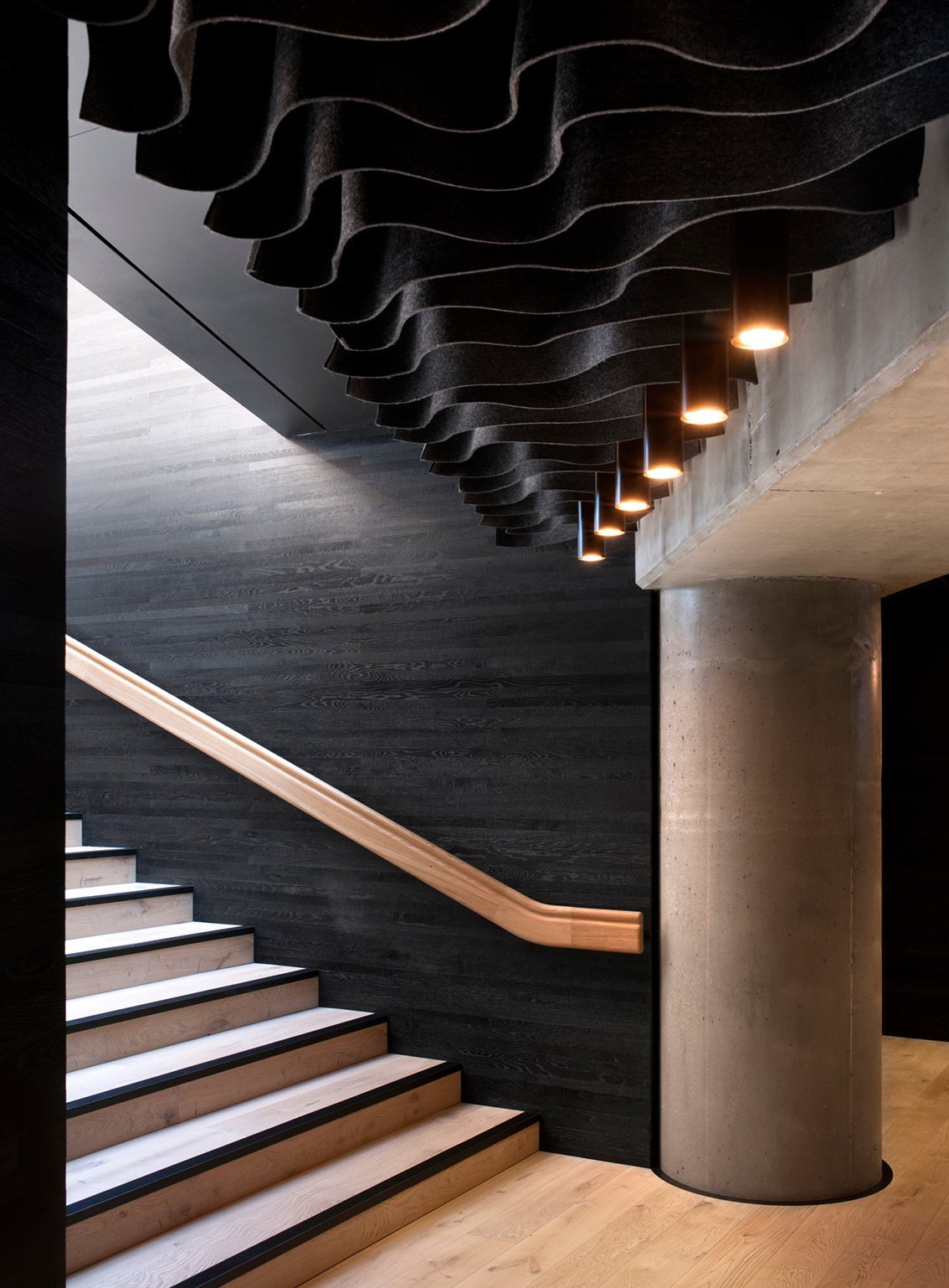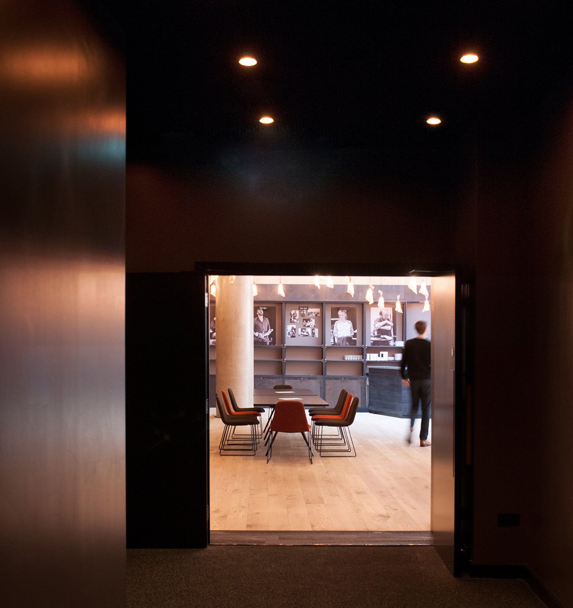 The high, brightly daylit timber-lined foyer space, looking directly over the panorama of London’s north bank, has been designed to be both intimate and generous, whether absorbing 1100 audience members or welcoming 25 morning coffee drinkers.