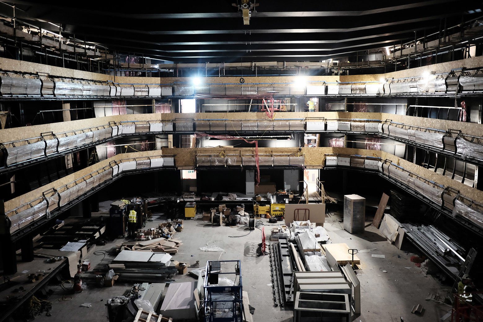 The auditorium itself is a completely new design approach: designed in collaboration with London Theatre Company’s technical and creative teams and stage engineering manufacturers Tait, the room was made and tested offsite in modular form before being erected as fully coordinated, finished components in the existing building shell.
