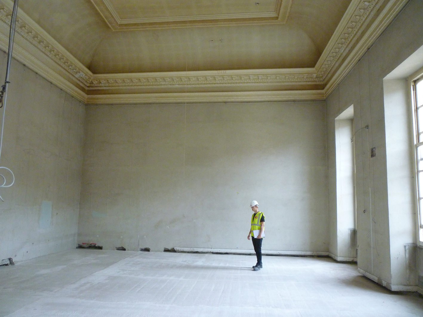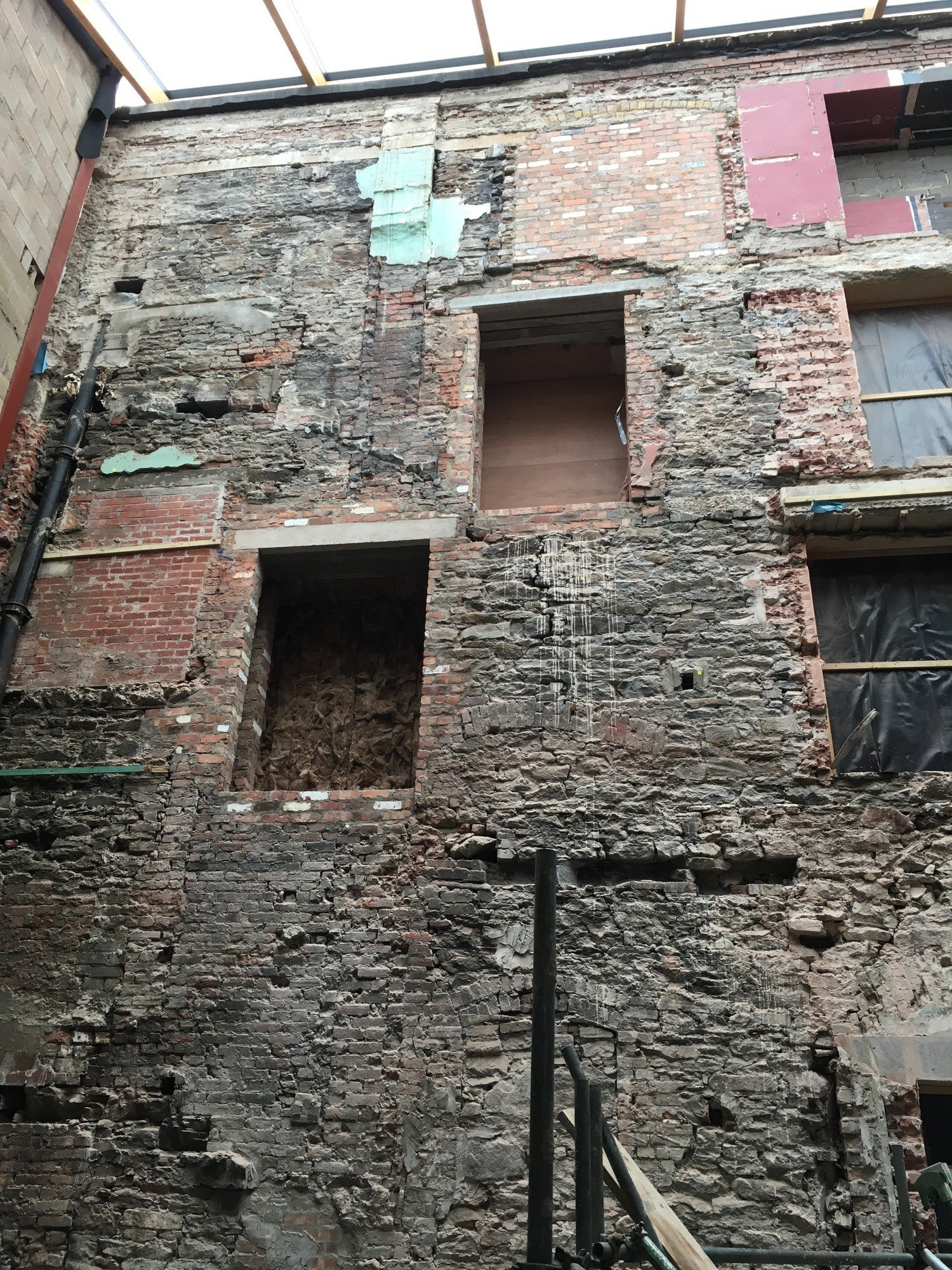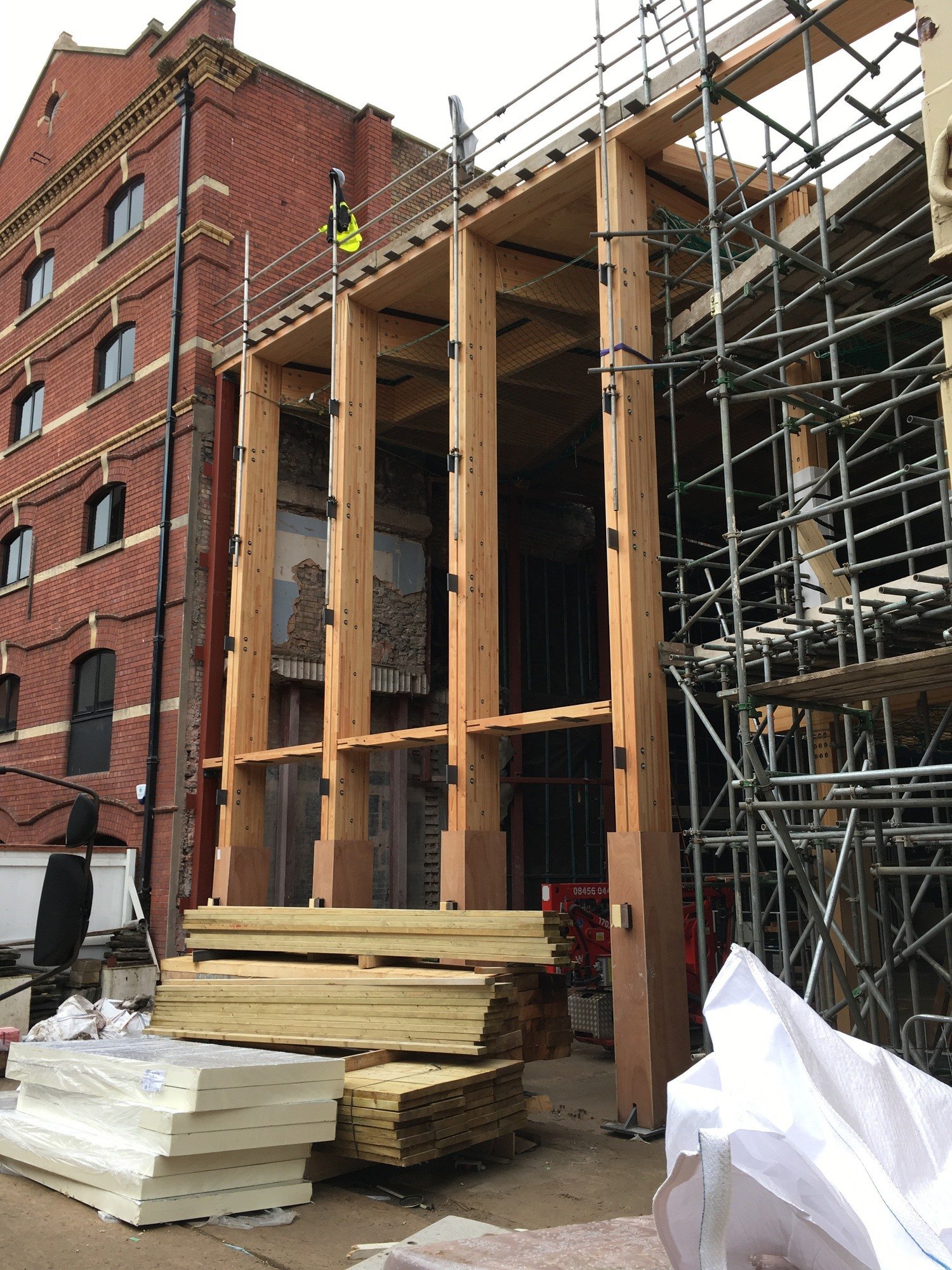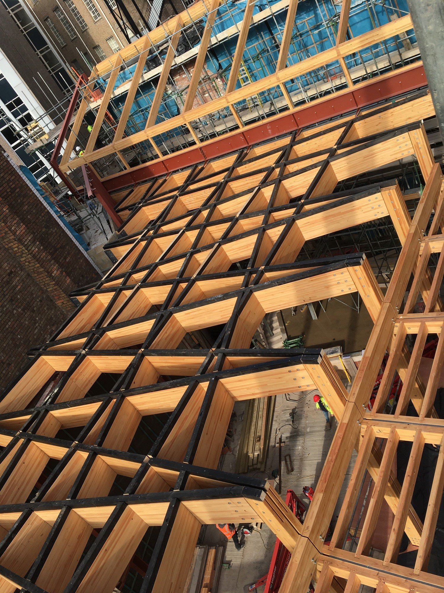 The foyer is conceived as an informal extension of the street, as much a covered public square as a discrete building. The space is framed and covered by structural timber and glass to bring daylight deep into the room. The centrepiece of the space is the much-altered façade of the Georgian auditorium, visible from the street for the first time, illuminated by a large light well and punctured by new openings to overwrite the visible evidence of historic alterations.