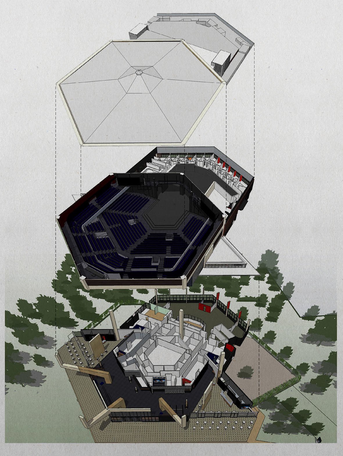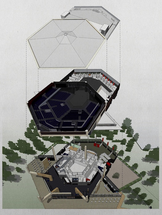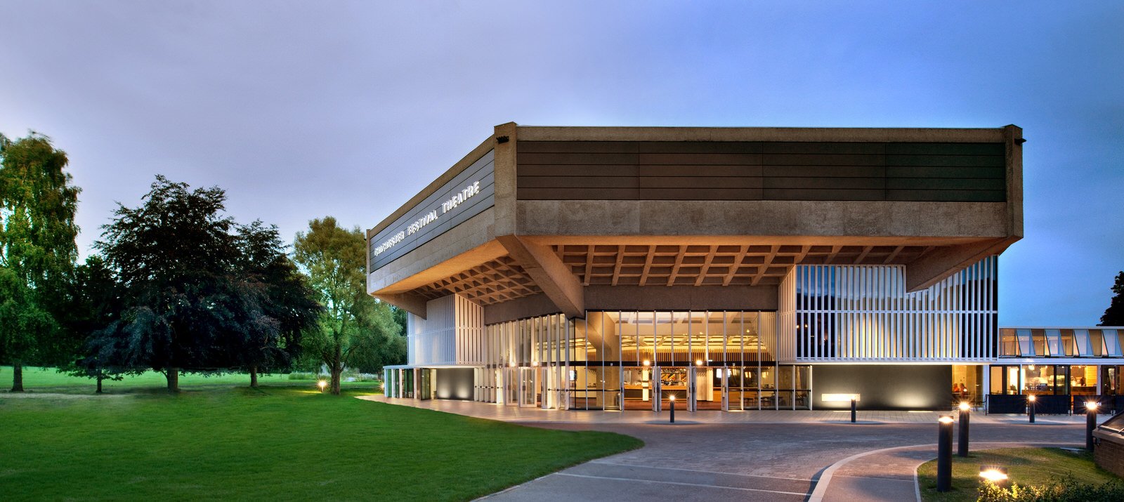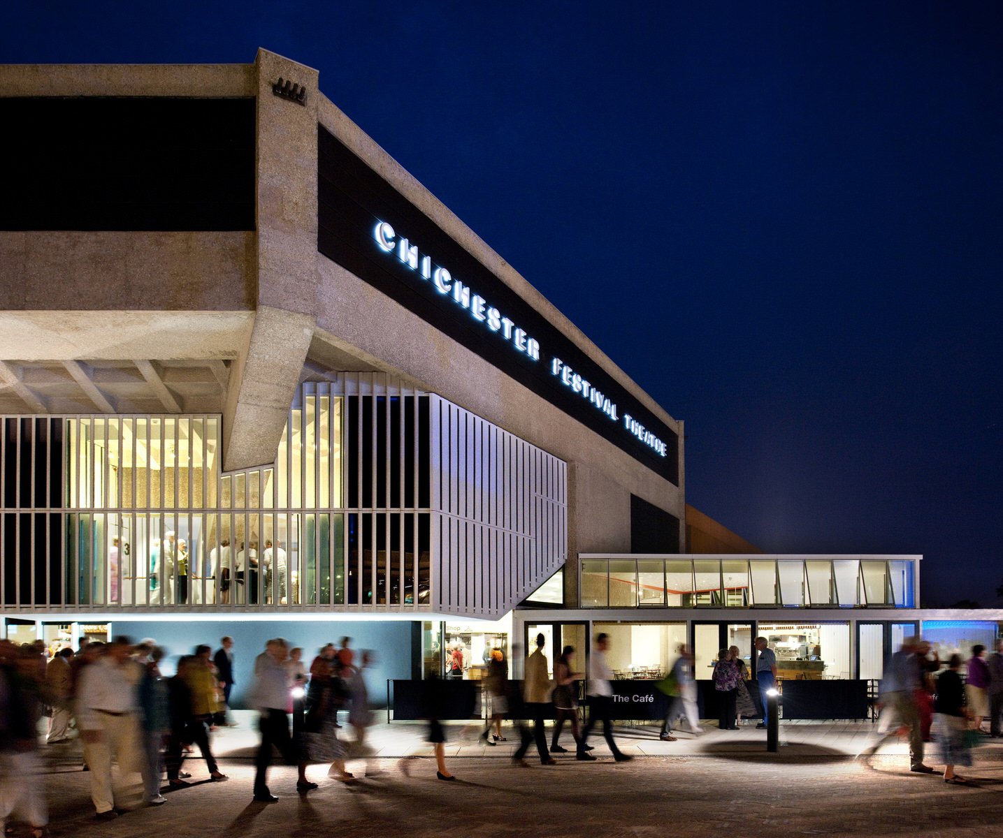 Funded by local subscription and conceived as a 1300 seat ‘pavilion in the park’ by architects Powell and Moya, the innovative 1962 Chichester Festival Theatre was the UK’s first thrust stage performance space. In upgrading and expanding the bold Modernist building to make it more welcoming and technically capable, our approach was to strip the theatre back to its original clarity and add equally bold new elements.