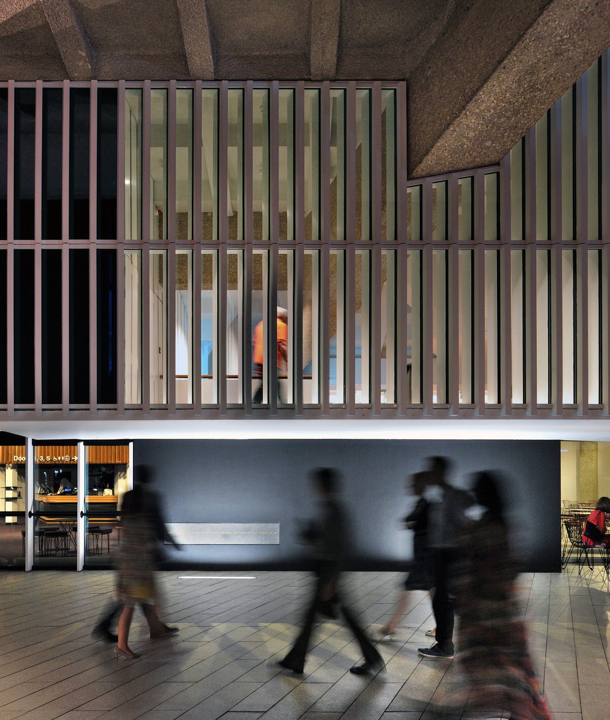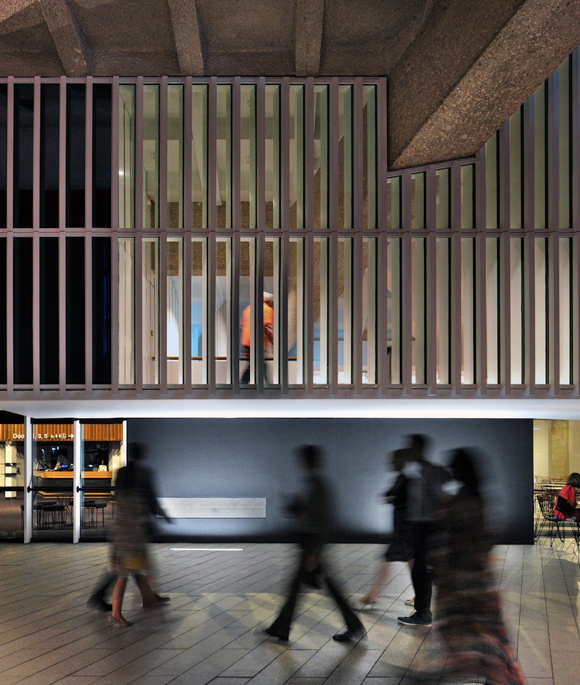We removed non-original accretions, expanded the foyer and re-housed the back of house facilities within a new extension of weathered steel to complement the rough concrete of the original building.