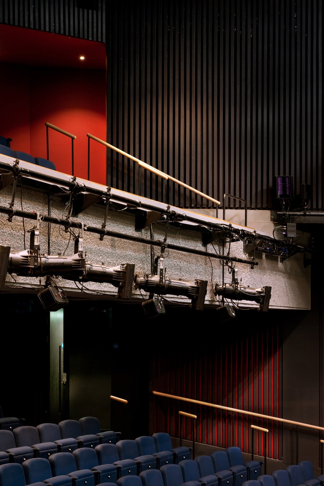 The wide, low auditorium has been significantly re-modelled to improve sightlines, increase theatrical intimacy and provide a more technically sophisticated and adaptable environment for contemporary theatre.