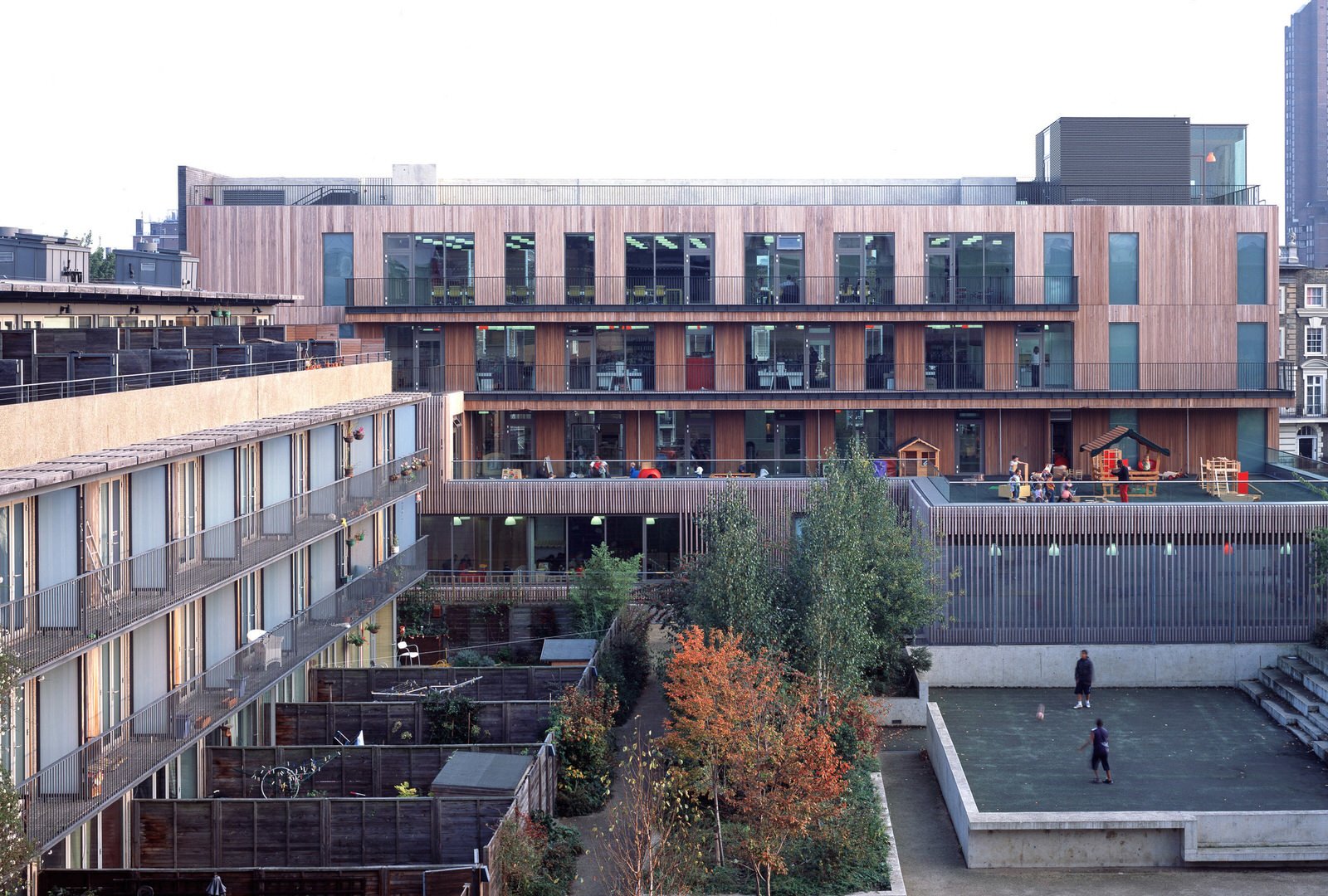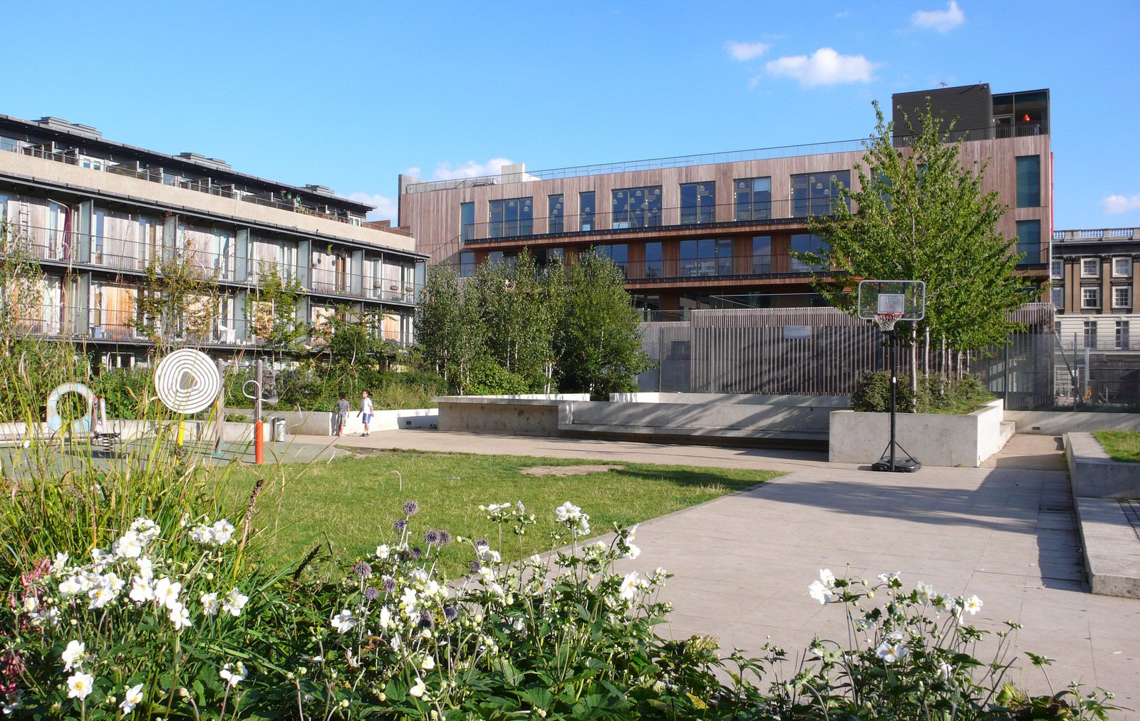 Once the last phase of work is complete, the Neighbourhood Centre and Iroko housing will fully enclose a residents’ garden and children’s playground.