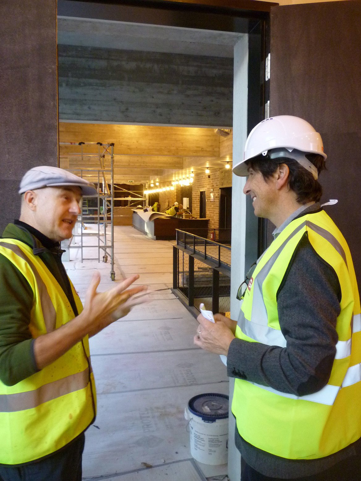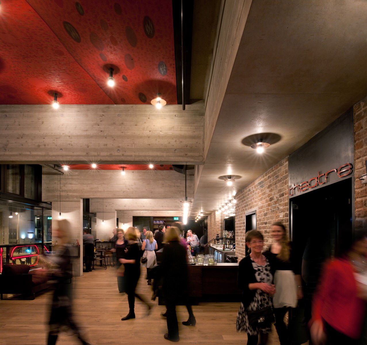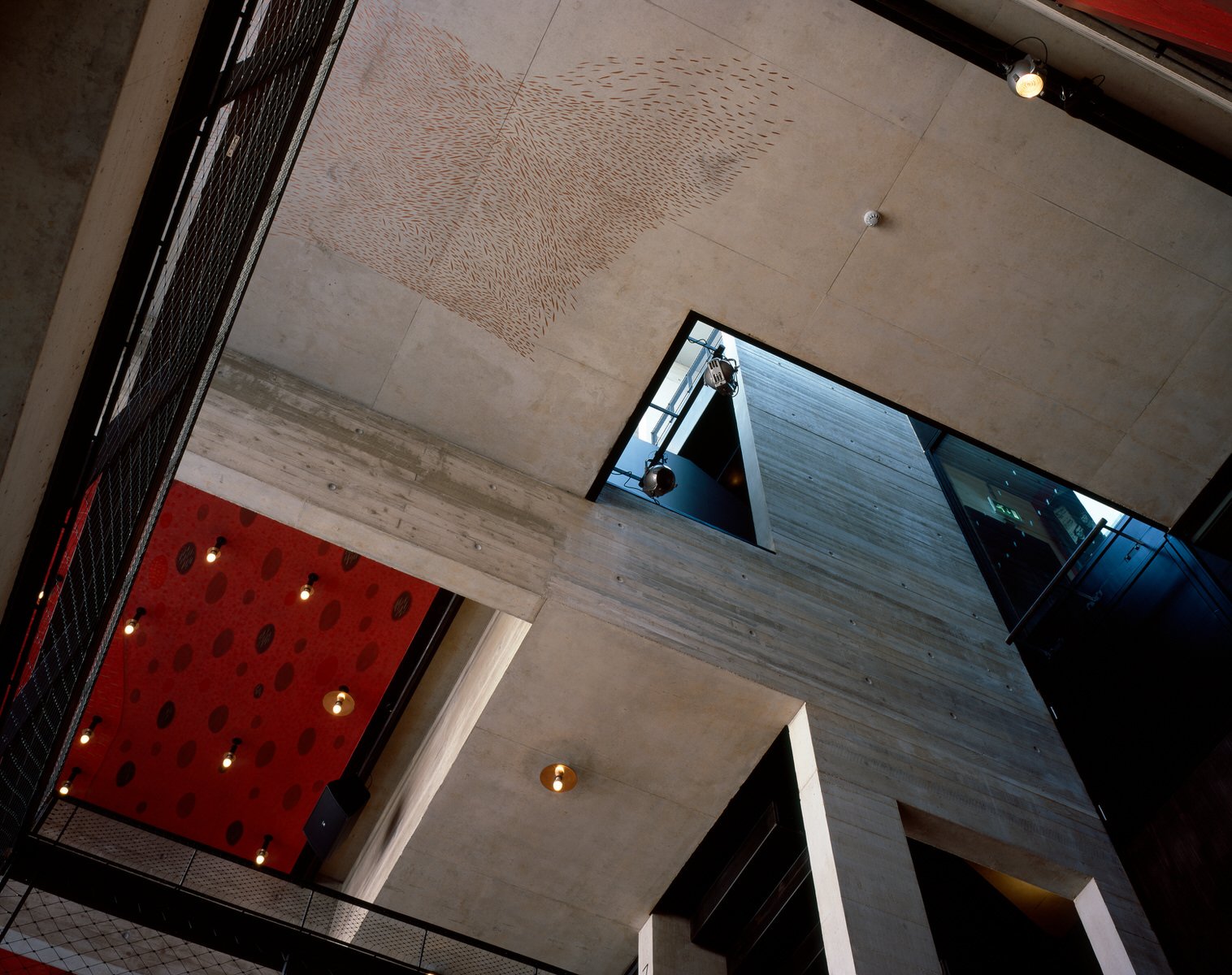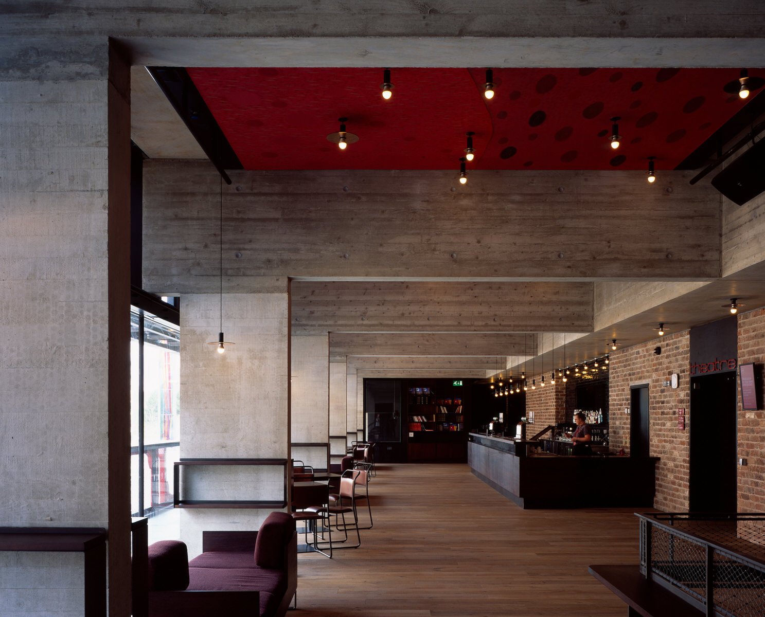 They are arranged around three interlocking split levels of circulation, culminating at the auditorium and serving a basement bistro, street café, first floor bar, a writers’ room and a community studio space.