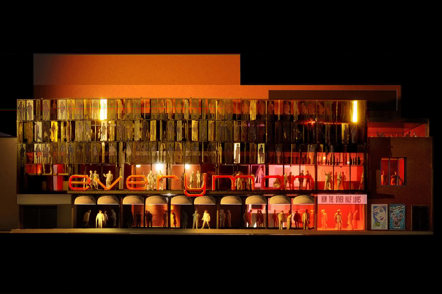 The public face of the theatre is its street frontage, formed of over a hundred life sized portrait shutters representing ordinary Liverpool residents. Inside, the foyers are designed to create a welcoming, unintimidating and legible place for public enjoyment.