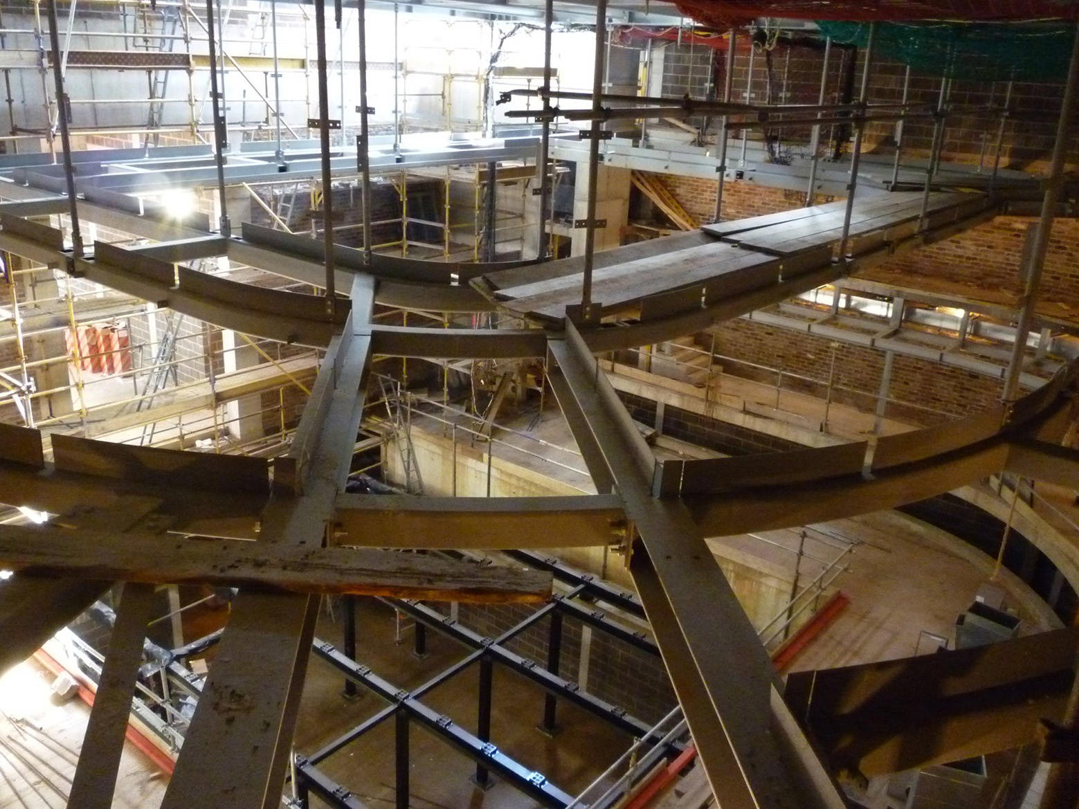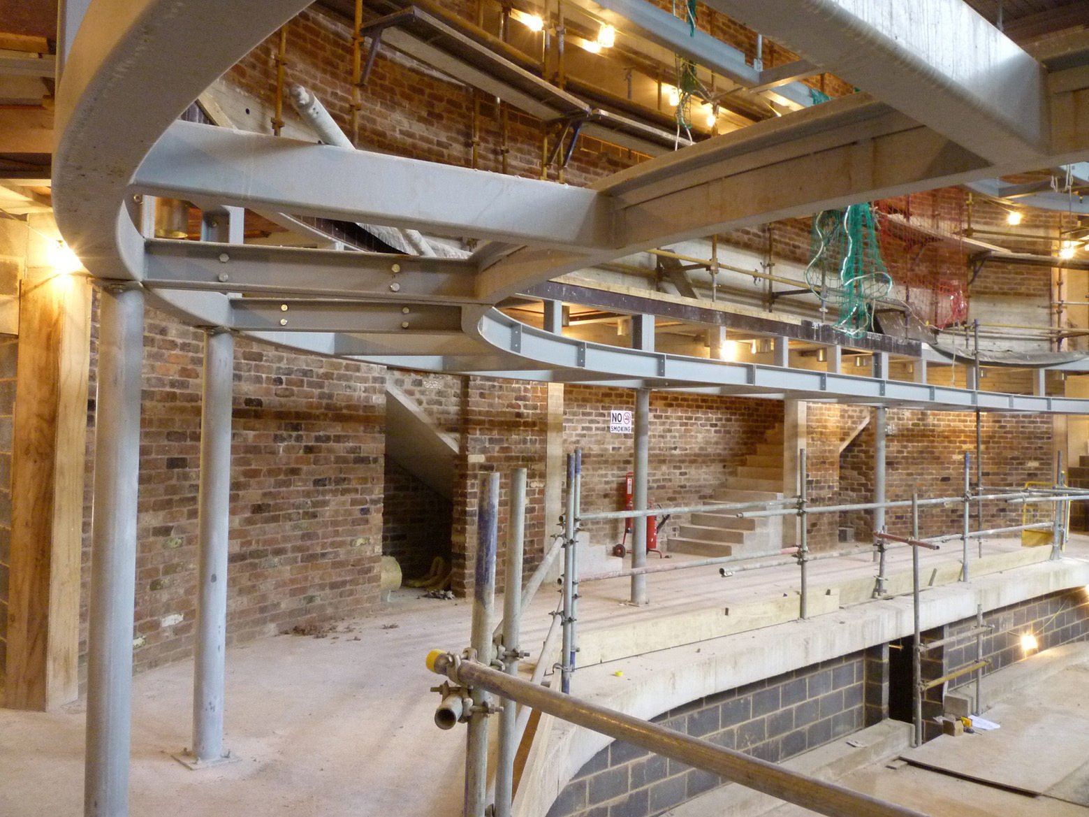 Like its predecessor, the new auditorium is an adaptable thrust stage, entered from first floor and constructed from the same, reclaimed bricks as the former building.