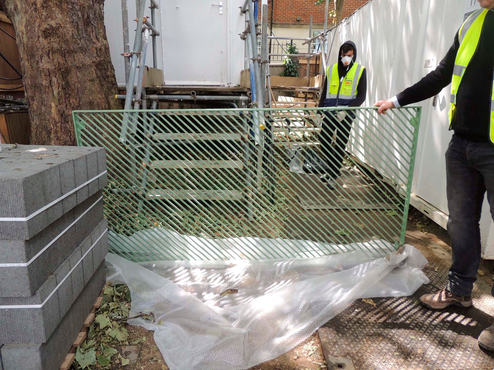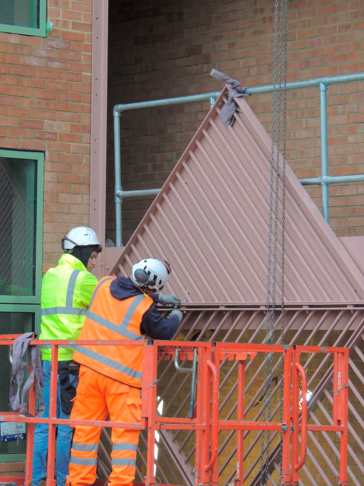 All metalwork elements have been manufactured offsite. We collaborated with the subcontractor to reduce the gallery screen to just three standard panel sizes that are repeated, mirrored and rotated across the façade to produce a leaf pattern that provides a backdrop to the shared allotment and garden area.