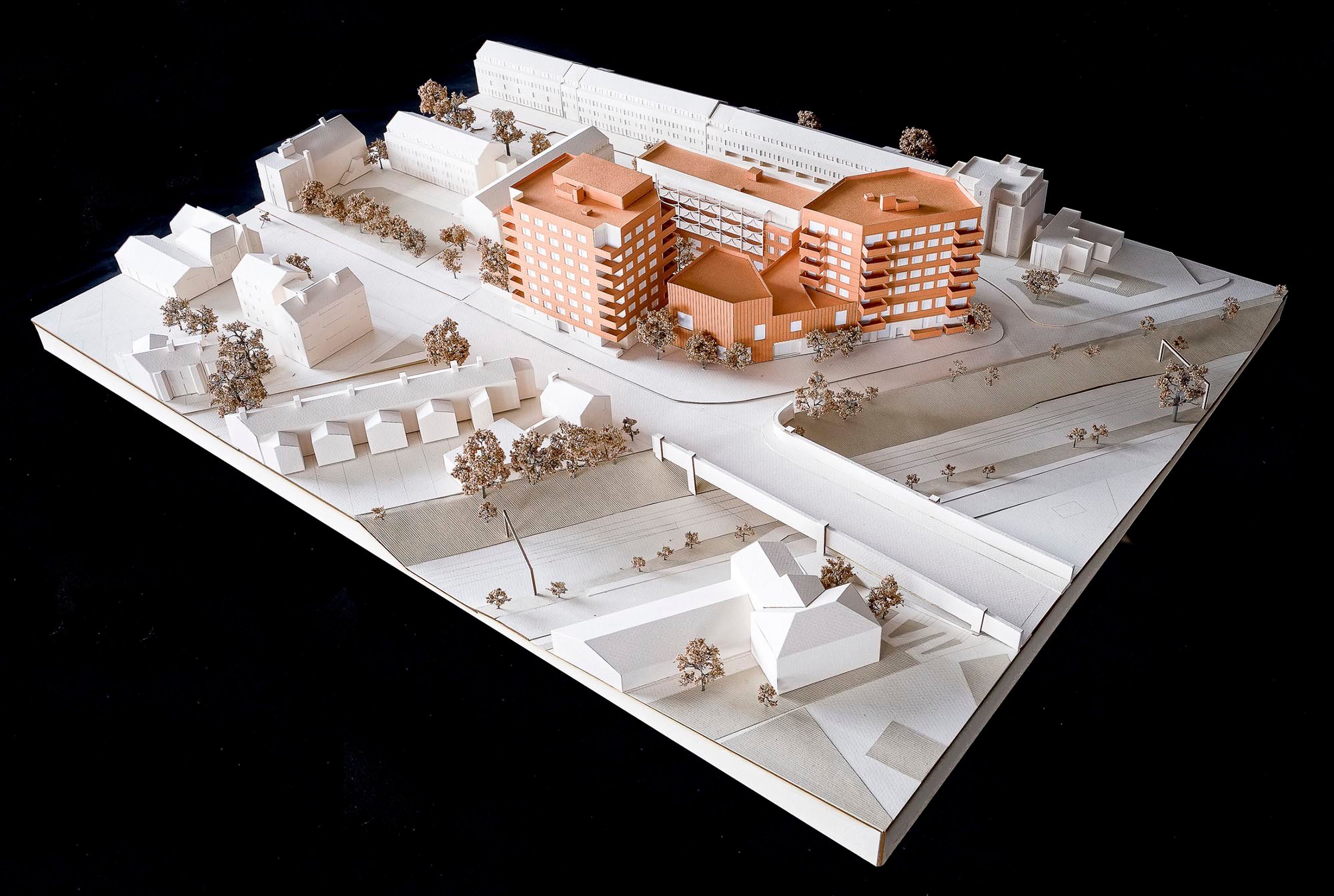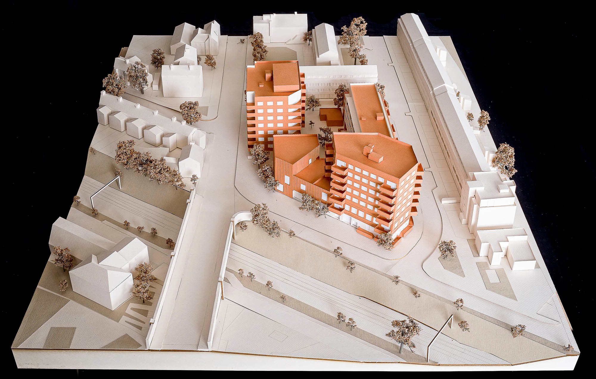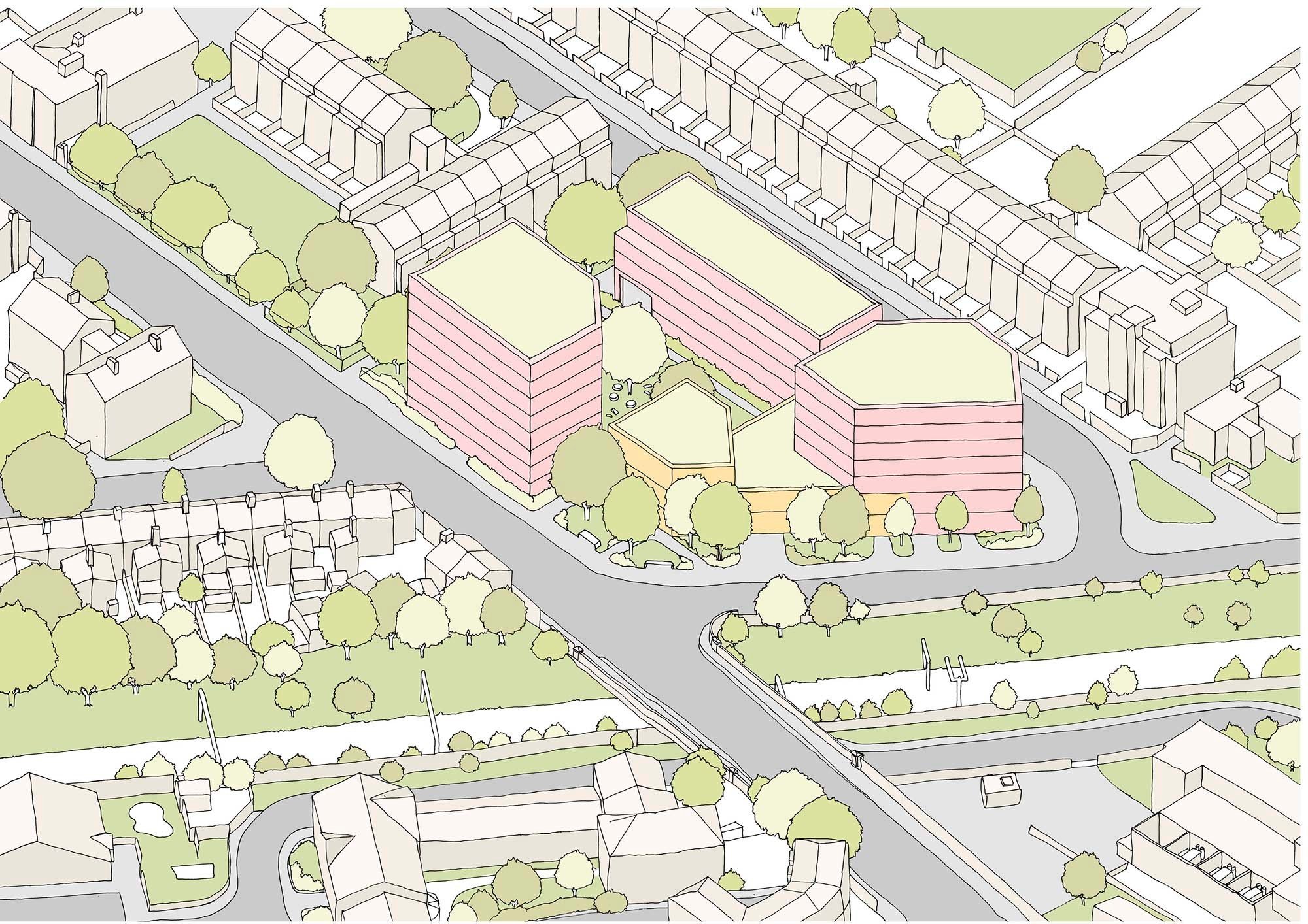 Existing mature trees to the north of the site were a key influence in the decision to not have built form on the northern boundary. Instead, the trees have been used to enhance the communal garden. The design development has been informed by continuous dialogue with planning officers, Design Review Panel members, neighbours, the client, the daylight consultant, and the wider design team. The scheme has received planning approval and will start on site in Spring 2022.