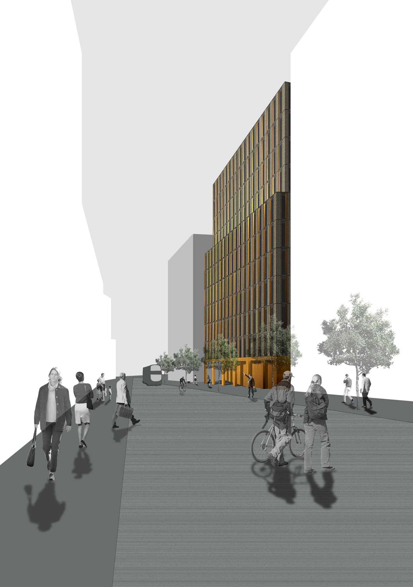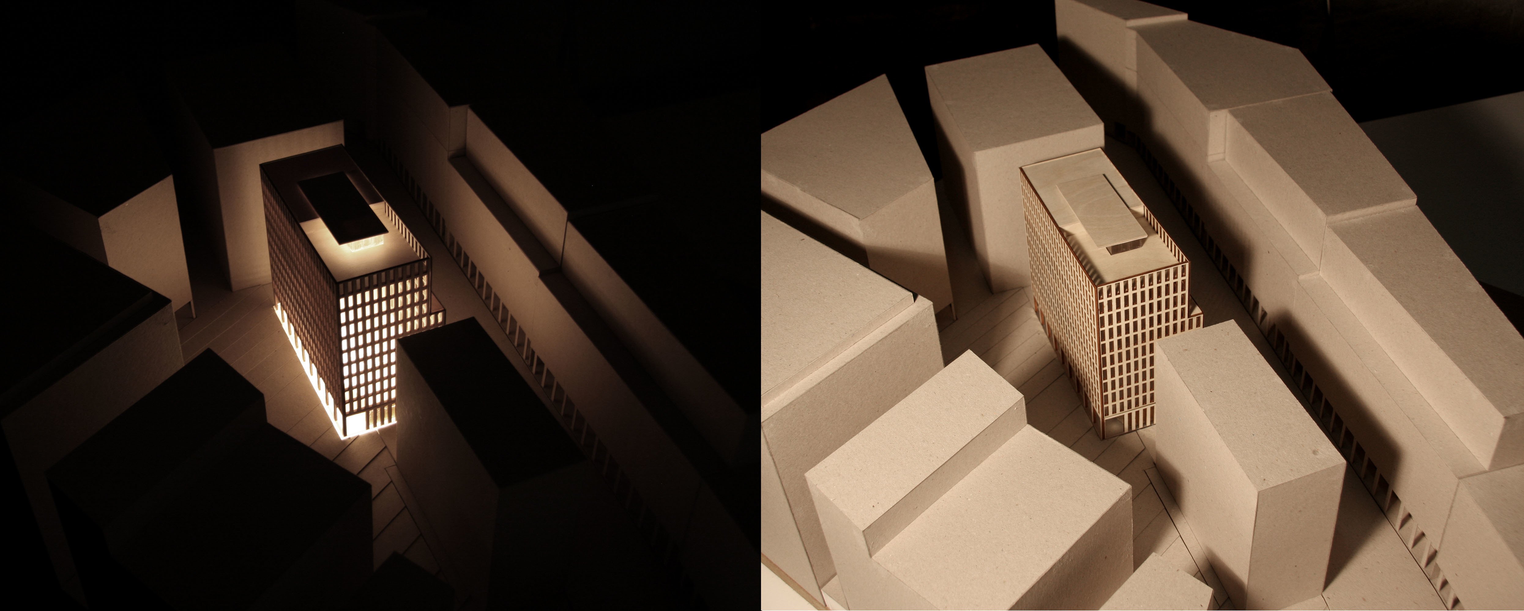 The proposal sought to reconcile the singularity of the buildings functions with the particularity of each of its four sides. The facades consisted of a regular grid of openings with different reveal conditions responding to the environmental demands of each orientation.