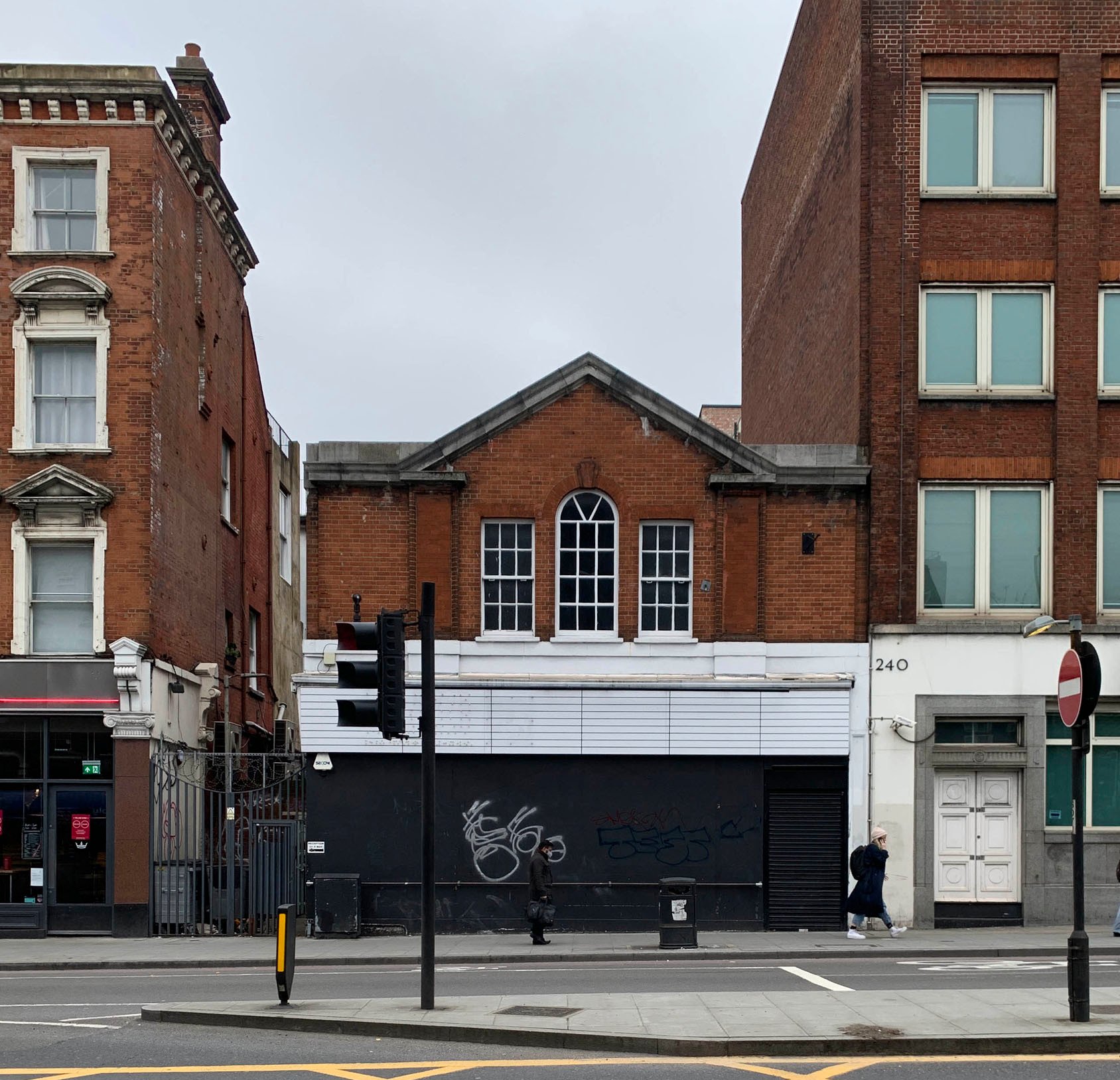 Giving the church an active street presence, an open and welcoming “shopfront” has been reinstated along Pentonville Road with a glazed corner onto Providence Row. Creating a contemporary addition to the street scape and complementing the existing brickwork on the upper floor, a single colour unites the ground floor glazed frontage with integrated solar shading awnings, King’s House signage, and the metalwork security gates bearing their logo.