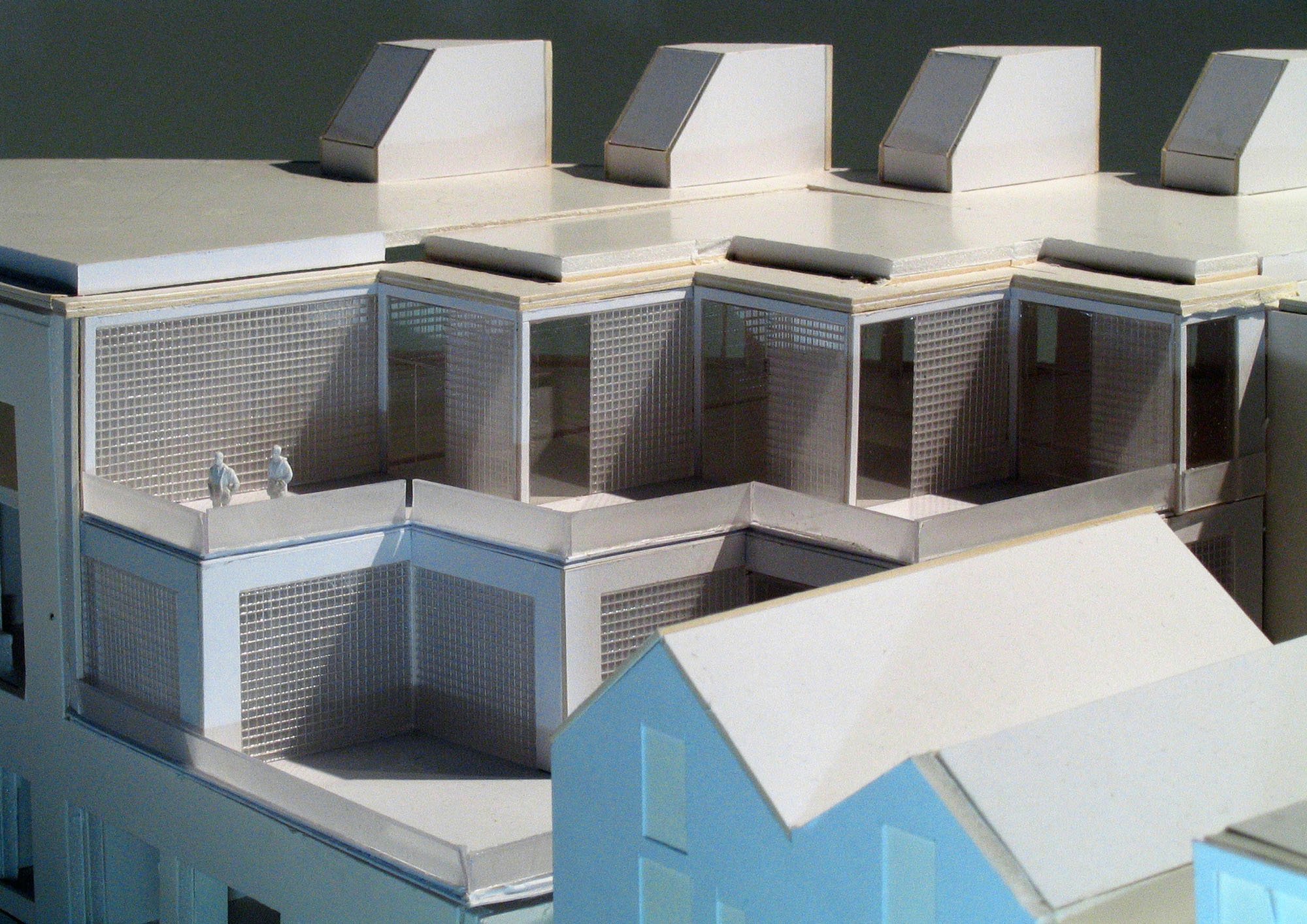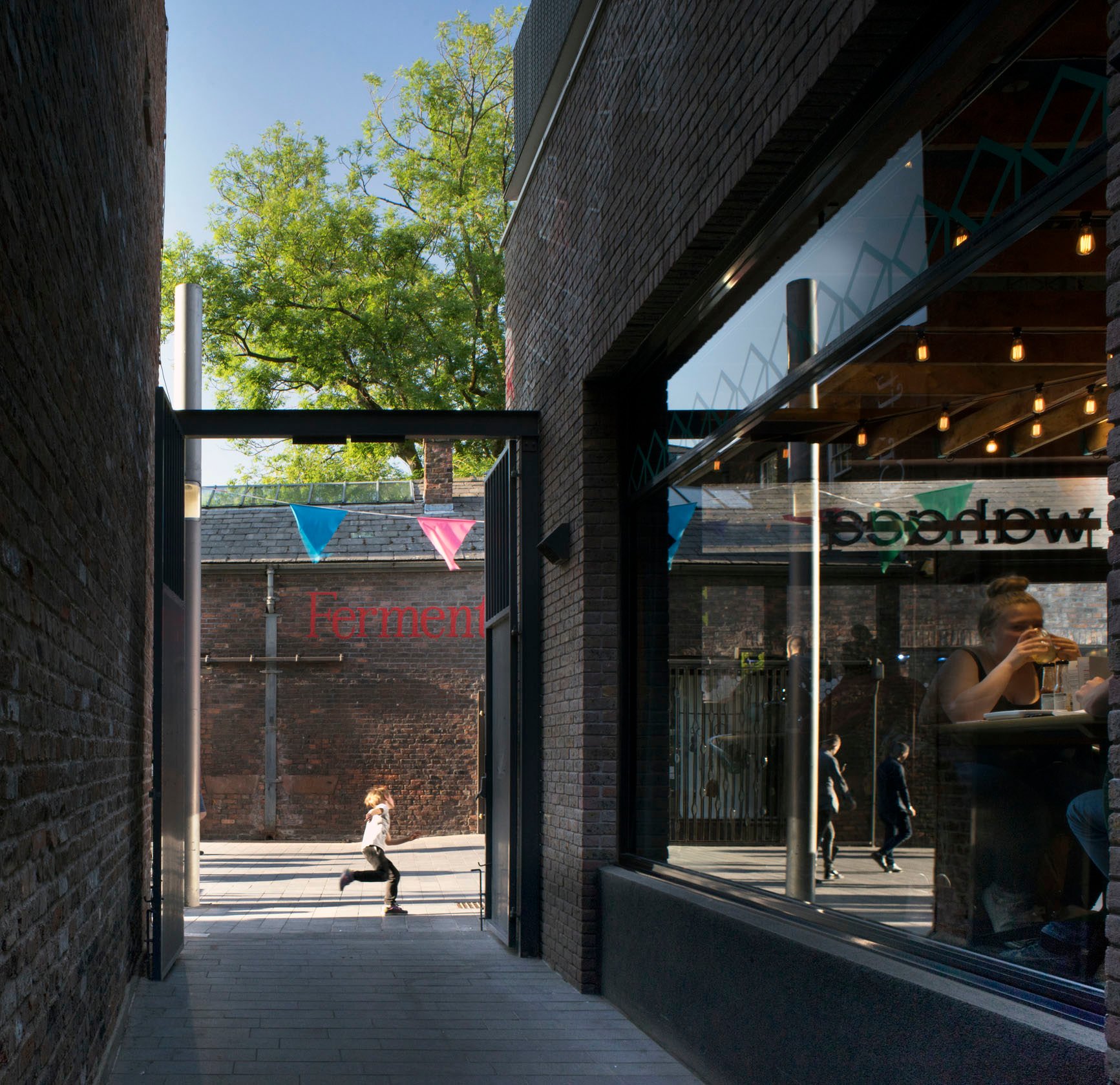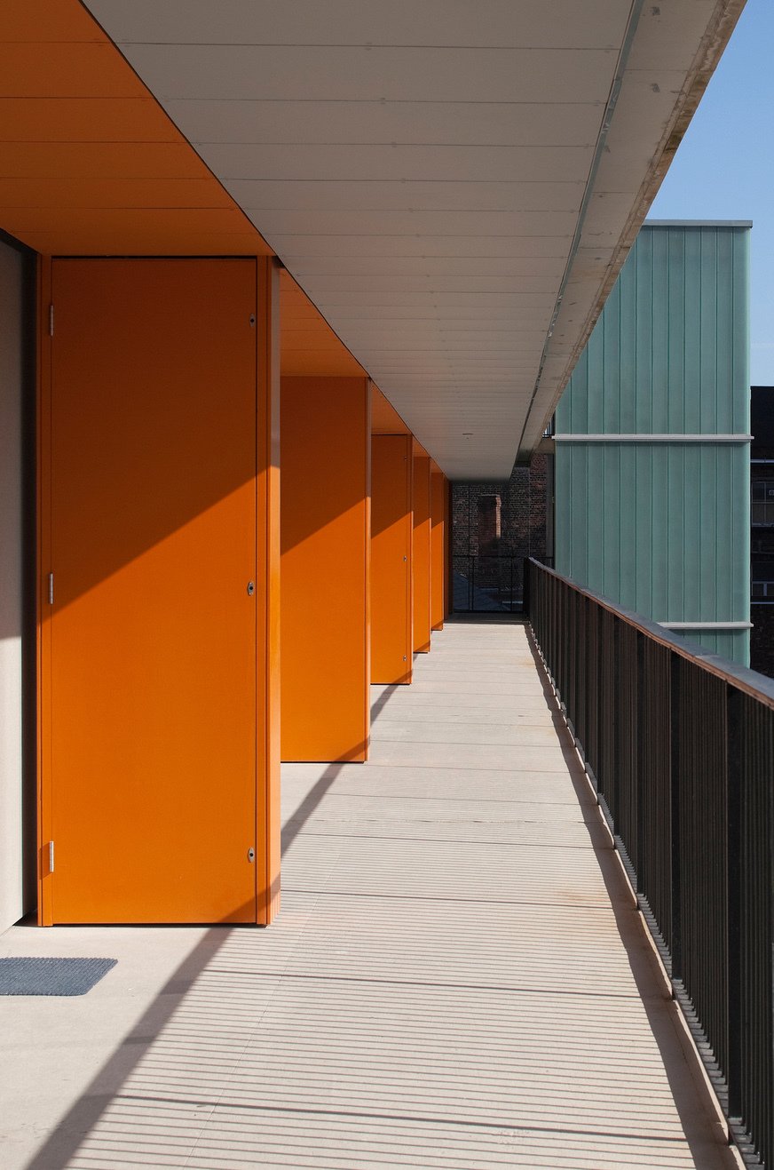 The garden and creche, raised above the public level, gives residents a calm focus above the buzz of the busy streets below, a haven in the city centre.