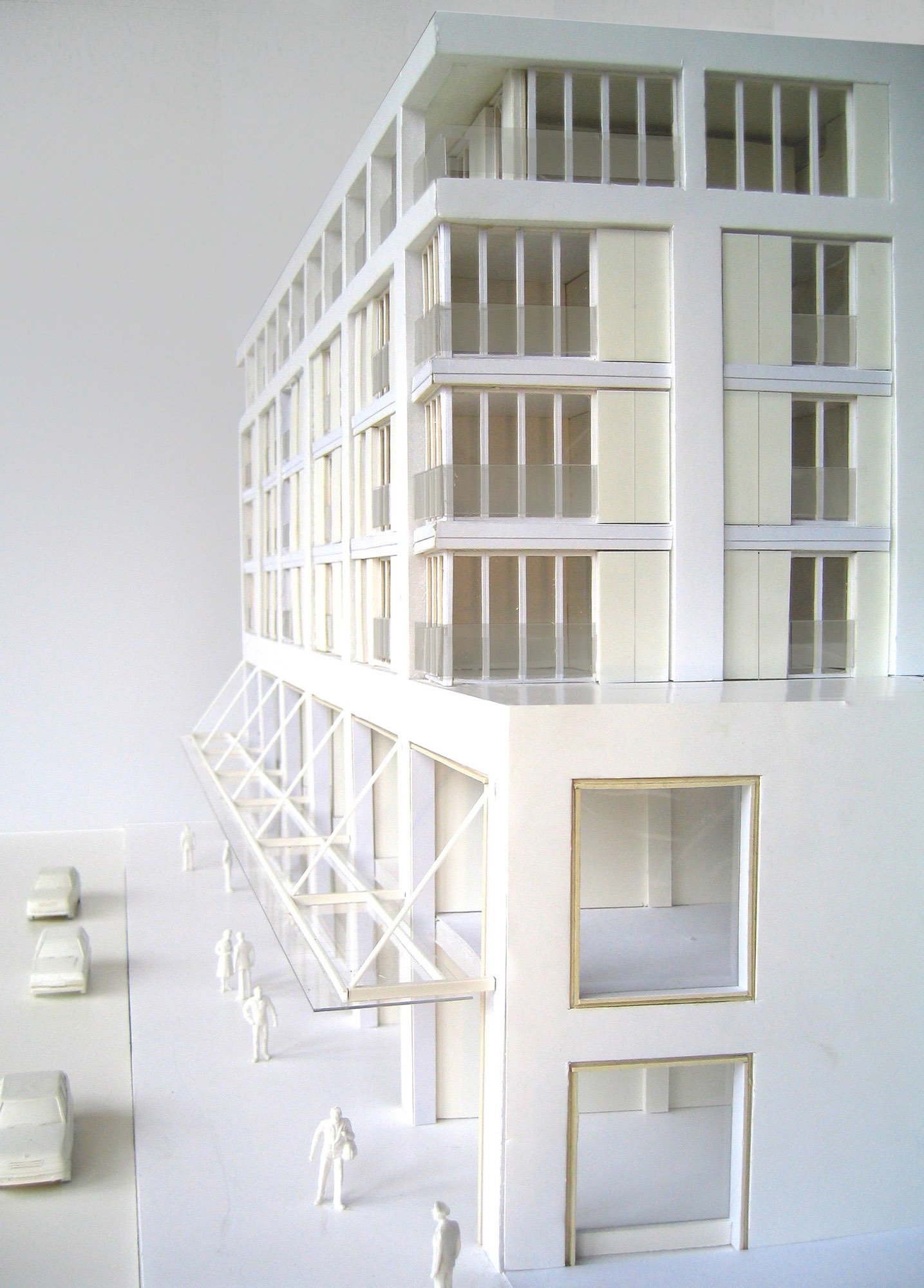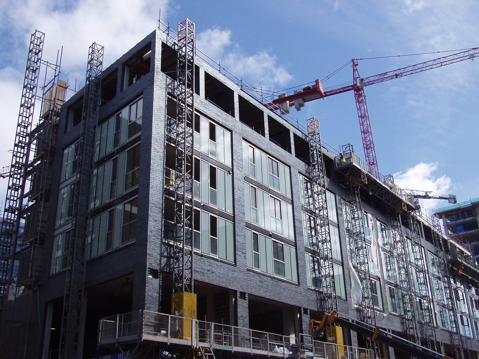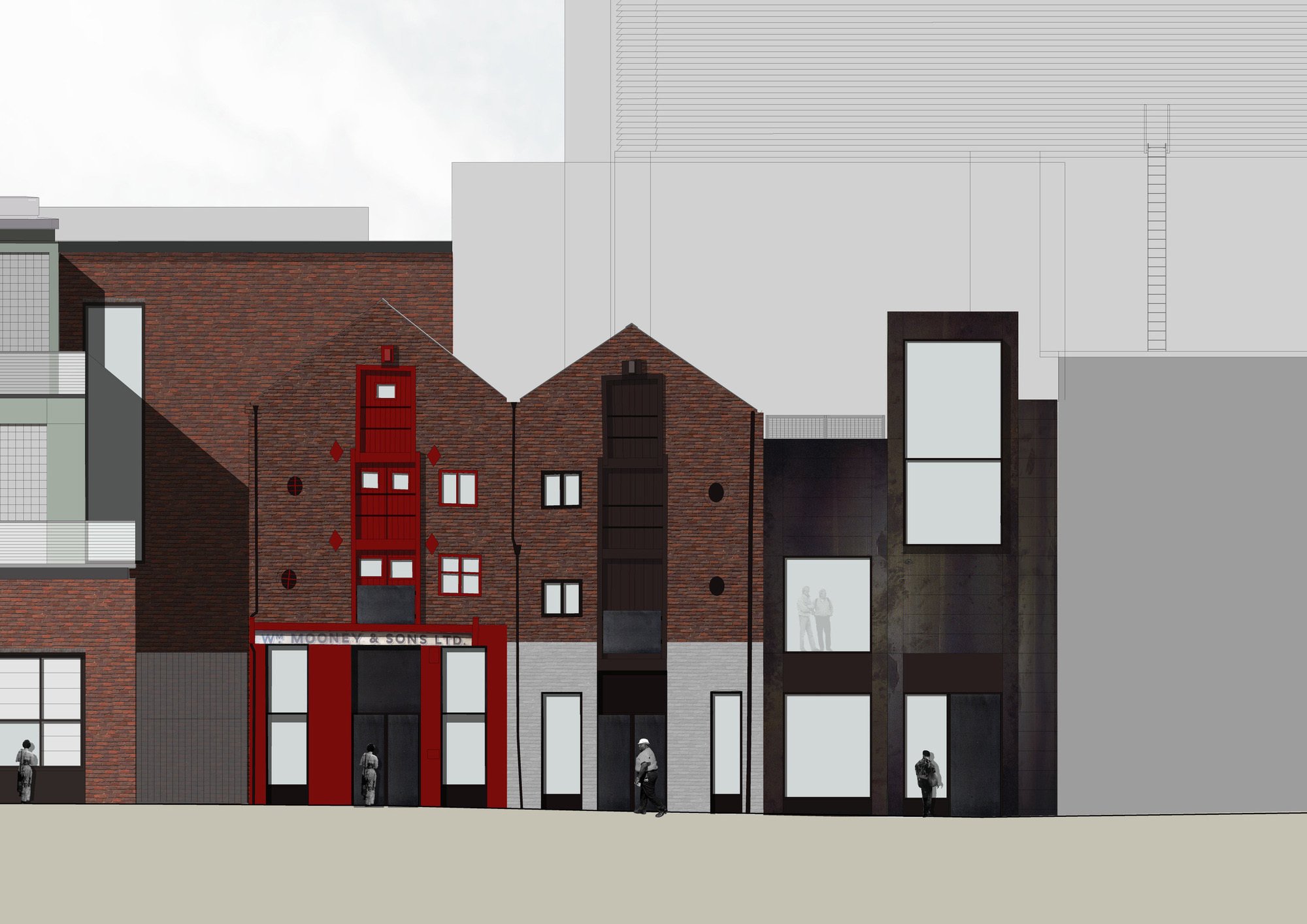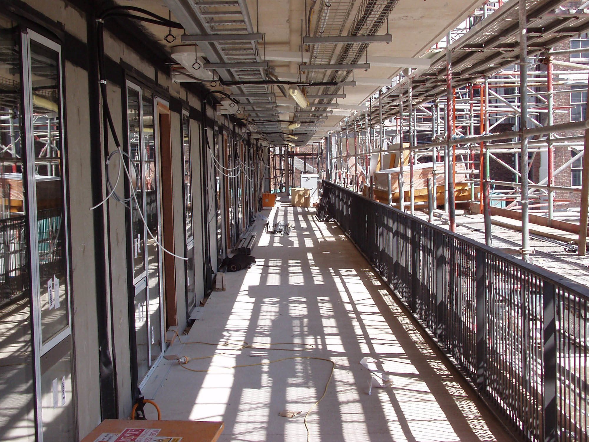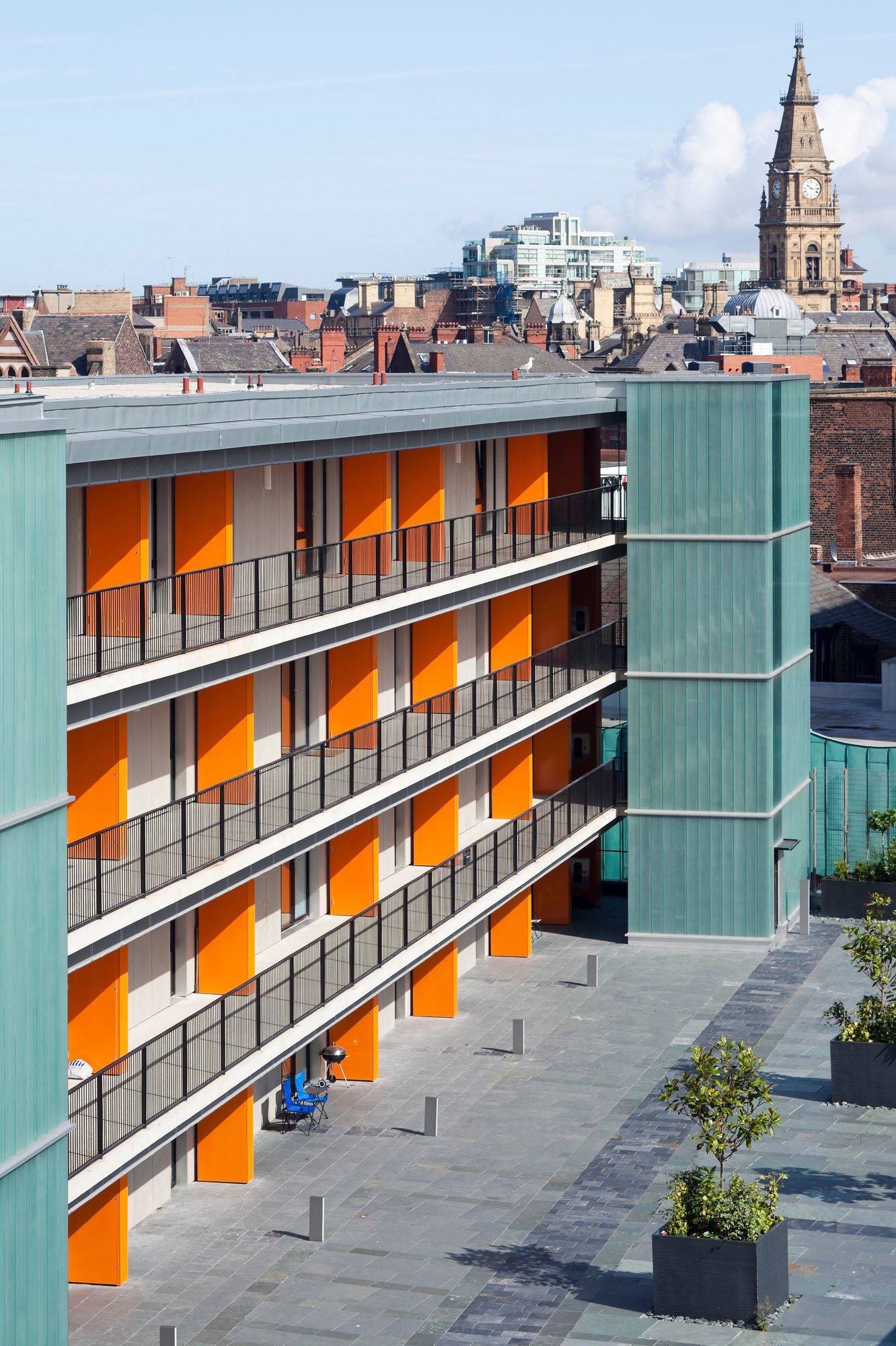 The residential accommodation faces Paradise Street on four floors above two retail levels and is grouped around a shared courtyard garden created on the roof of the retail accommodation. Access to the courtyard level is provided via a shared core from street level, and the courtyard provides access to secondary cores that serve individual flats.
