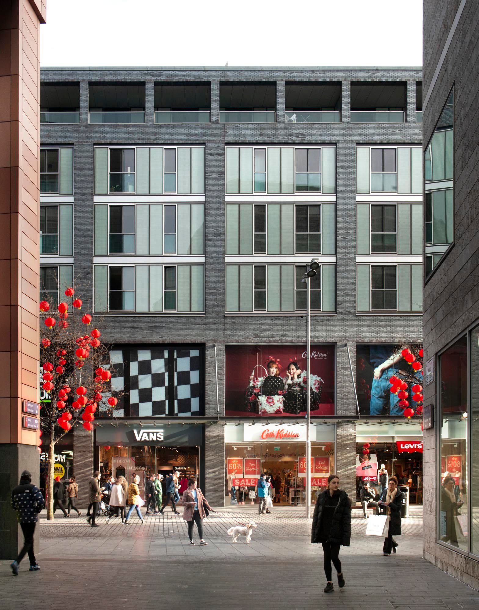 Consisting of a mixed-use development with retail, residential and a creche, it has primary retail frontages onto both Paradise Street and the new St Peters Arcade where we collaborated with Dixon Jones, the designers of the arcade, under a single appointment with the client Grosvenor.