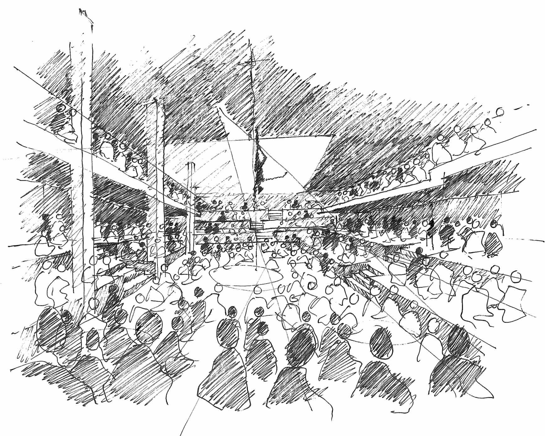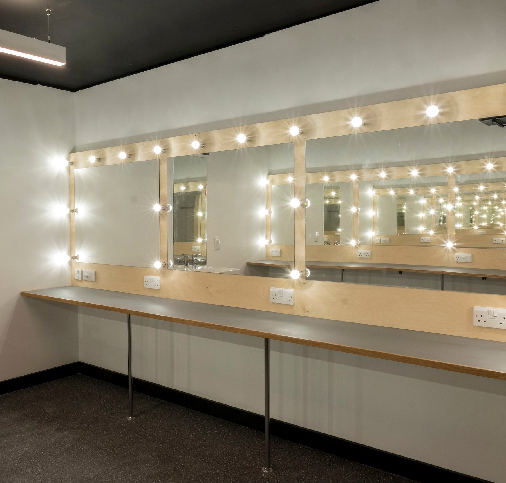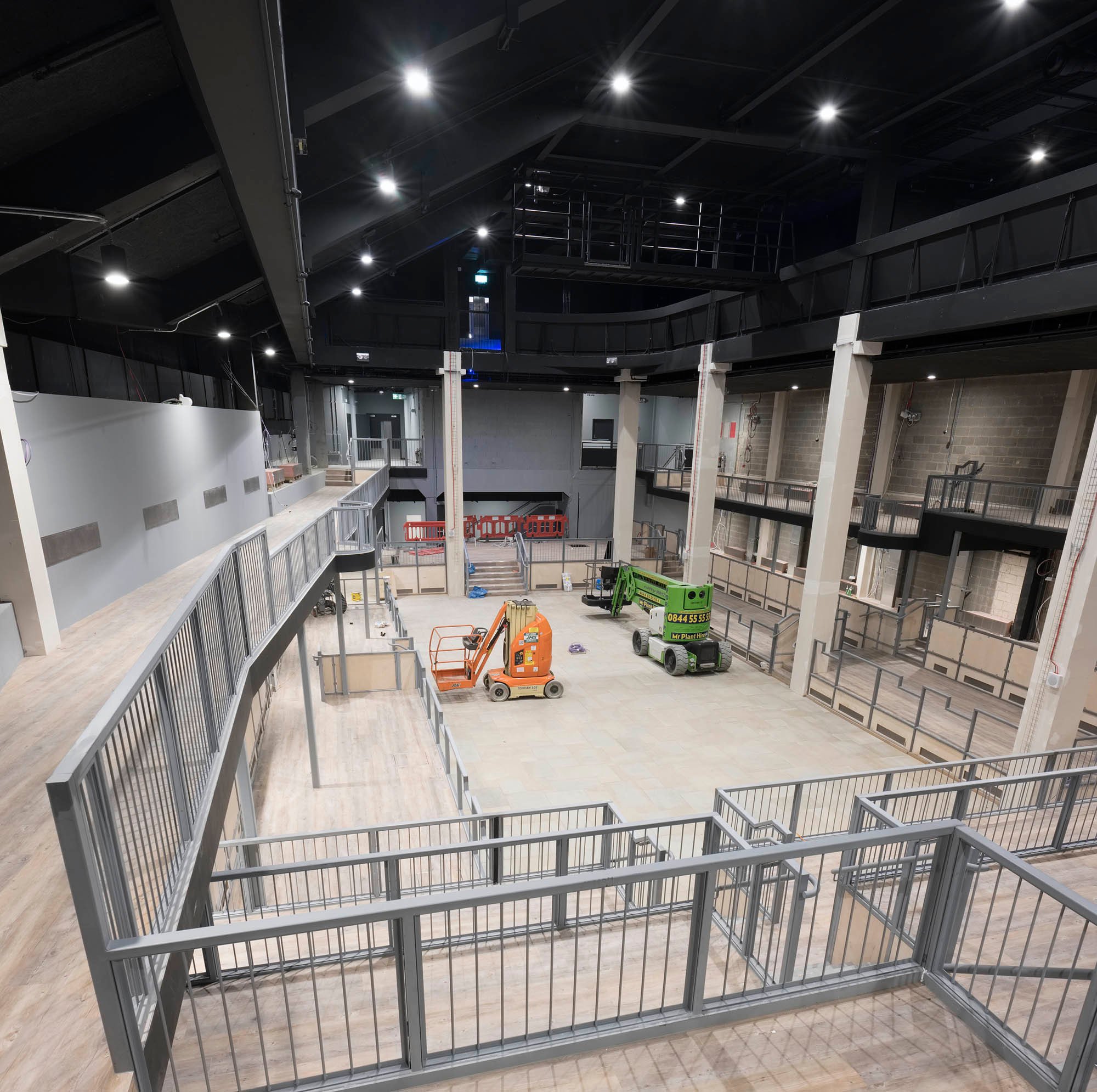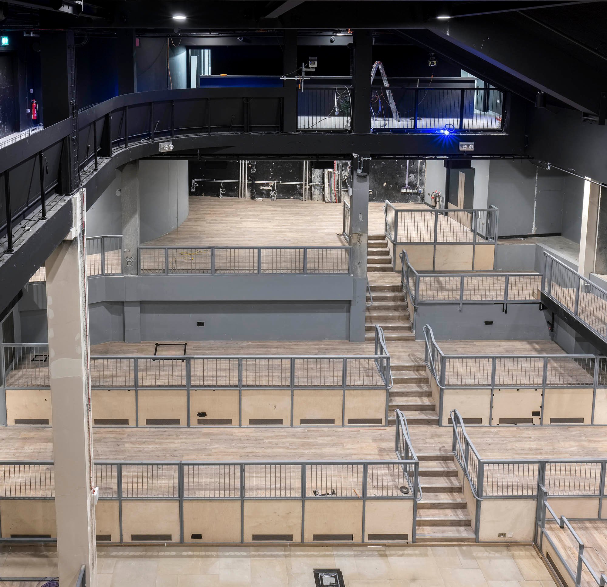 Completed over a short timescale and on a tight budget, the design team retained elements of an existing nightclub on the site to reduce material use and embodied carbon. The voids below the terraces form large plenums, supplying air via attenuated vents in the scenery to reduce acoustic interference with the performance.