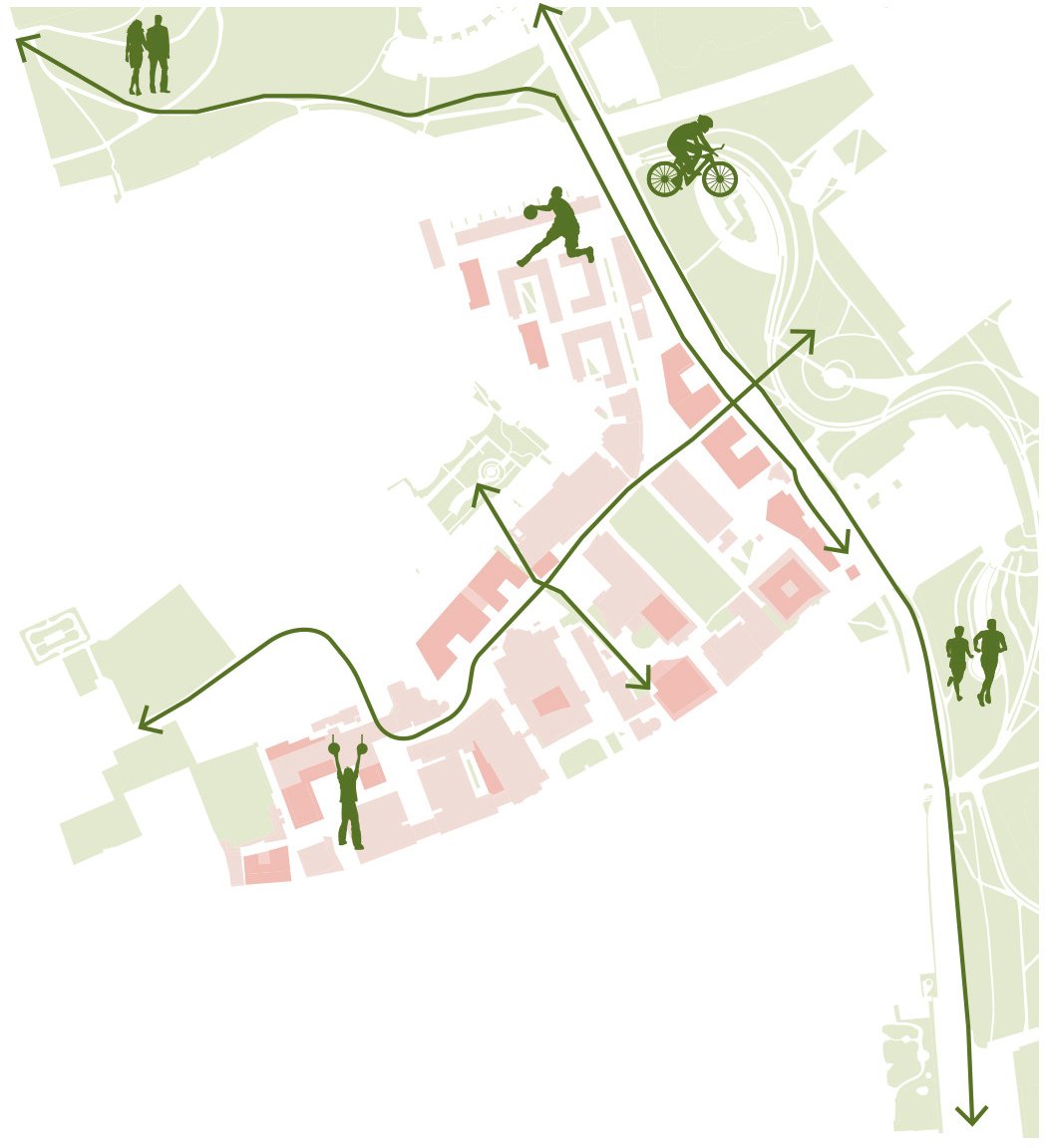 Until now the campus has developed in a largely ad-hoc way, and it was our aim to ensure that future development is considered in a more comprehensive manner in order to enhance the quality of the estate. In order to do this, the Masterplan objectives include strengthening community, protecting and enhancing heritage assets, improving public realm and ecology, strategic and coherent growth, improved permeability and sustainable transport infrastructure. These strands are embedded within suggestions for core development opportunities, and in the key design principles that should be considered in proposals for individual sites.
