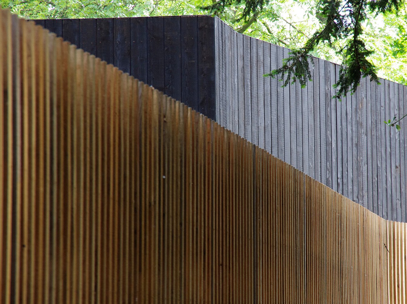 Using a combination of unfinished and dark stained Larch for the external skins, the structures are already growing back into the landscape that envelops them.