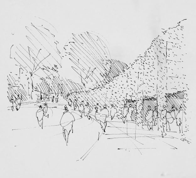 Hidden by mature landscape from all sides, the theatrical experience relies on a sense of discovery, of entering a different world within the everyday surroundings of the park.