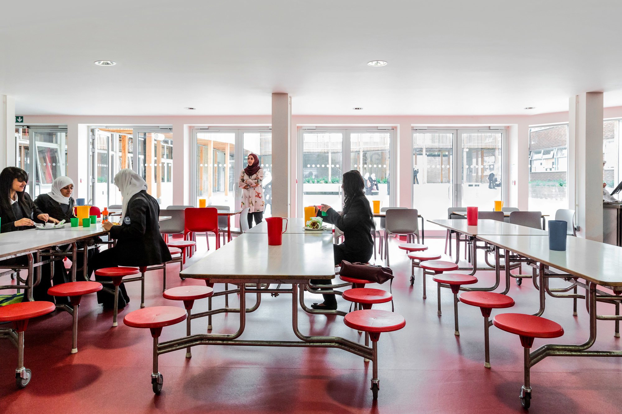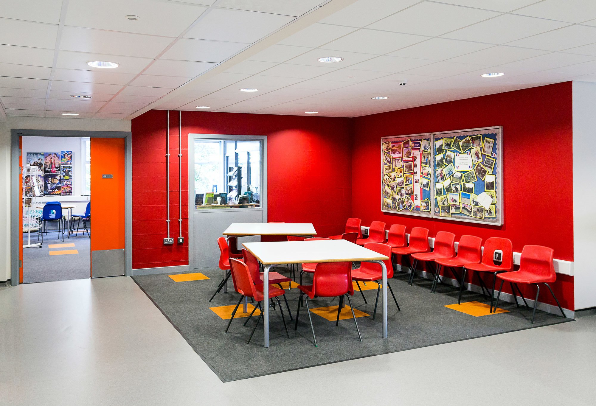Internally, the narrow corridors have been broken up to enable the circulation areas to expand, creating breakout areas to provide informal learning spaces, reduce congestion, increase passive supervision and allow daylight into the space. All classrooms have been re-configured to aid modern teaching techniques with new services coordinated throughout.