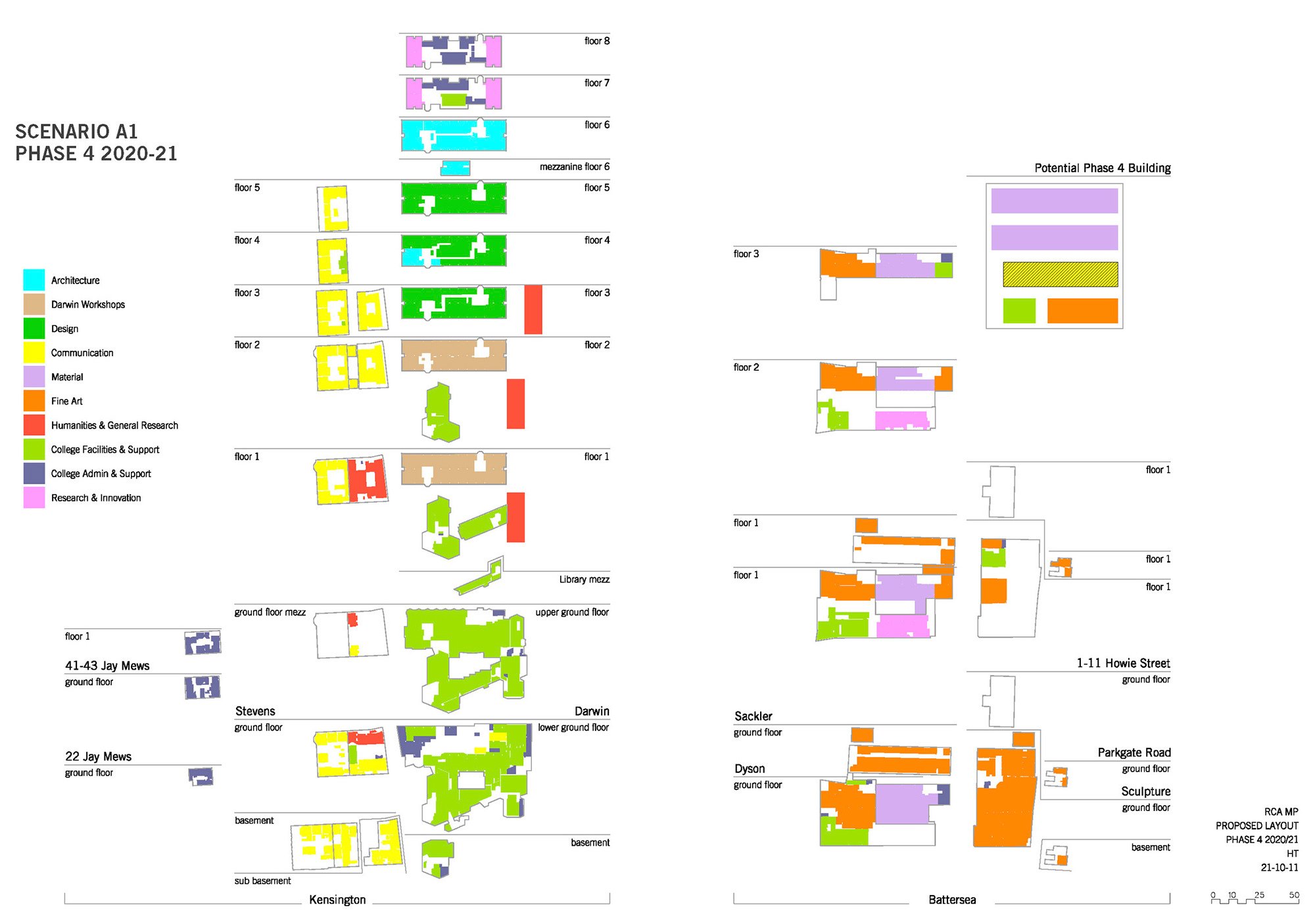Our Masterplan identified opportunities for expansion across the Kensington and Battersea Campuses, formulated a strategy for systematically upgrading the College’s existing facilities and established the most effective departmental adjacencies. These were planned alongside optimising the suitability and utilisation of space. The resulting document set out a clear roadmap and vision for the future of one of the world’s leading Art and Design institutions.