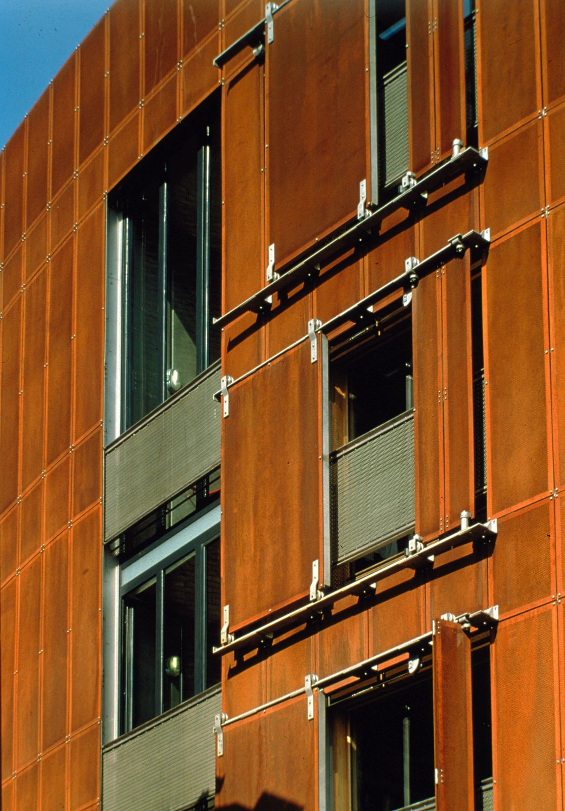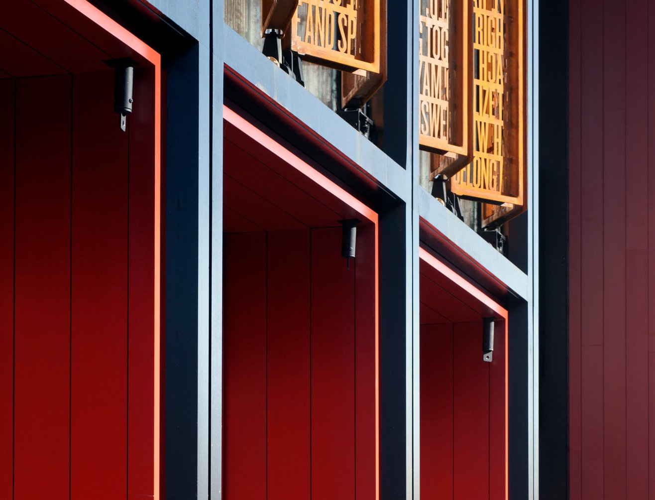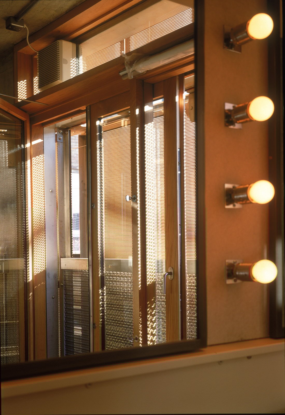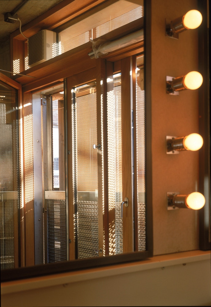 The upstairs studio theatre, completely rebuilt to provide more height and flexibility, is reached by a staircase which gradually narrows and compresses on the journey from the street to the ‘attic’. Obsolete back of house and dressing room spaces have been replaced with a new, weathered steel-clad extension.