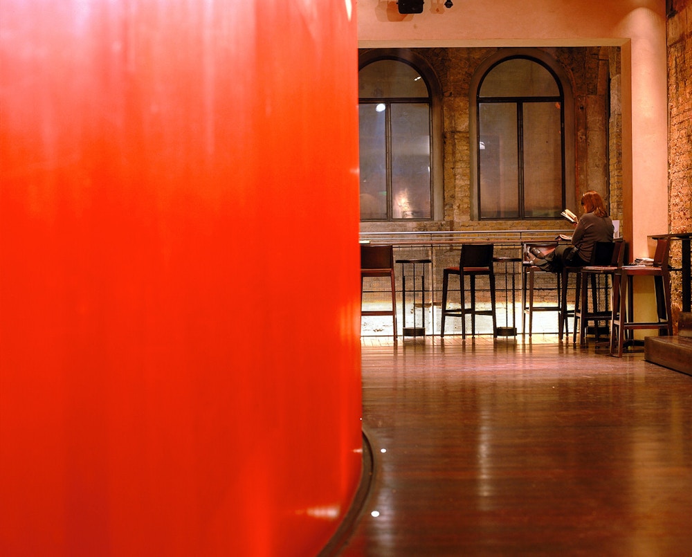 The connection between the foyers and the outside world has been reinforced by the twin devices of a more visually porous street facade and a vibrant vermilion mural by artist Antoni Malinowski on the drum wall of the Auditorium, signifying the live presence of the theatre from across the square. A palette of tactile interior materials - reclaimed red Jarrah timber, polished concrete, black steel, patinated bronze and Venetian plaster - was selected to weather over time alongside the original fabric of crumbling brickwork, mosaic floors, wrought iron and old plaster.