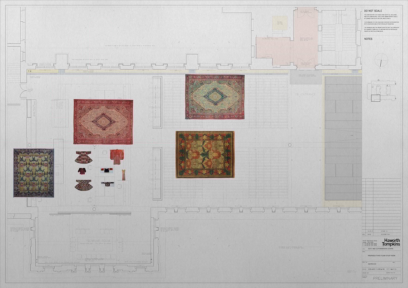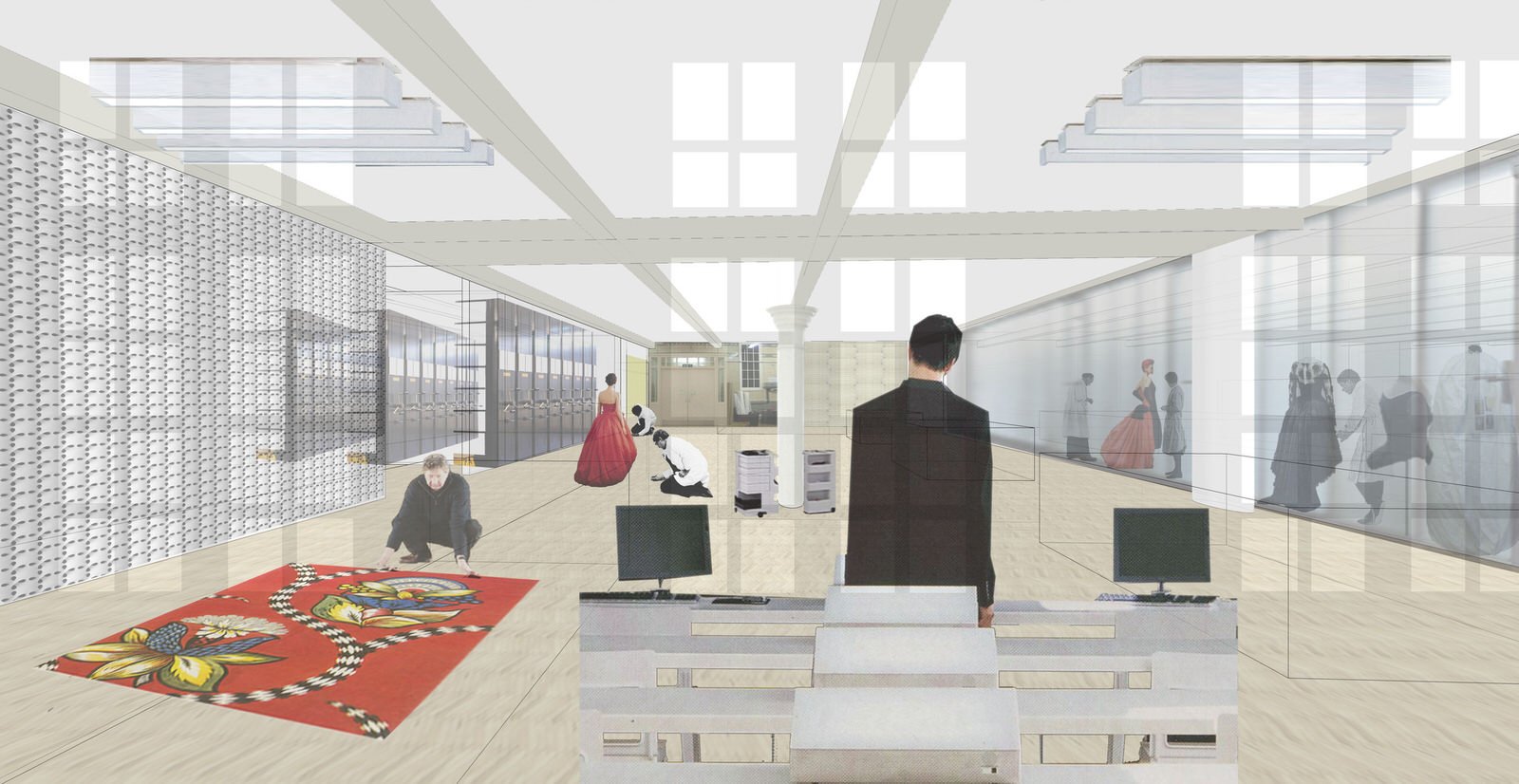 The brief was to create an enhanced ‘behind the scenes’ study experience, with the emphasis on a working Textile and Fashion Collection, where the storage and conservation elements were made explicit - a working studio rather than an exhibition room or a curated space. The study room area was to have a formal grandeur and scale similar to a reading room in a library or a salon in a fashion house.