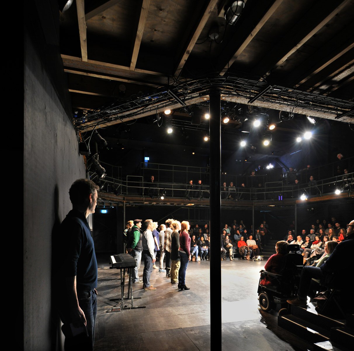 This project was a temporary venue for the National Theatre on London’s South Bank, maintaining a third auditorium while the Cottesloe was closed for a year during the NT Future redevelopment. Designed and built in a year, the Shed was a collaborative process between the building designers, the National Theatre, and theatre-makers who then worked in the space, in a way that more closely resembled a theatre show or an art installation than a conventional construction project.