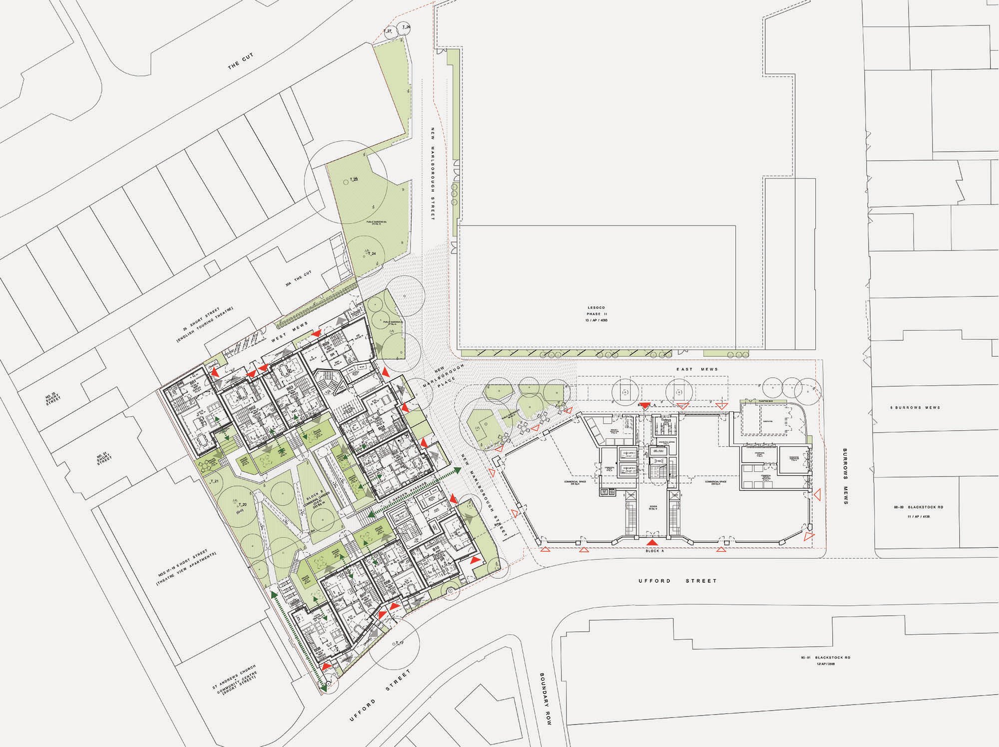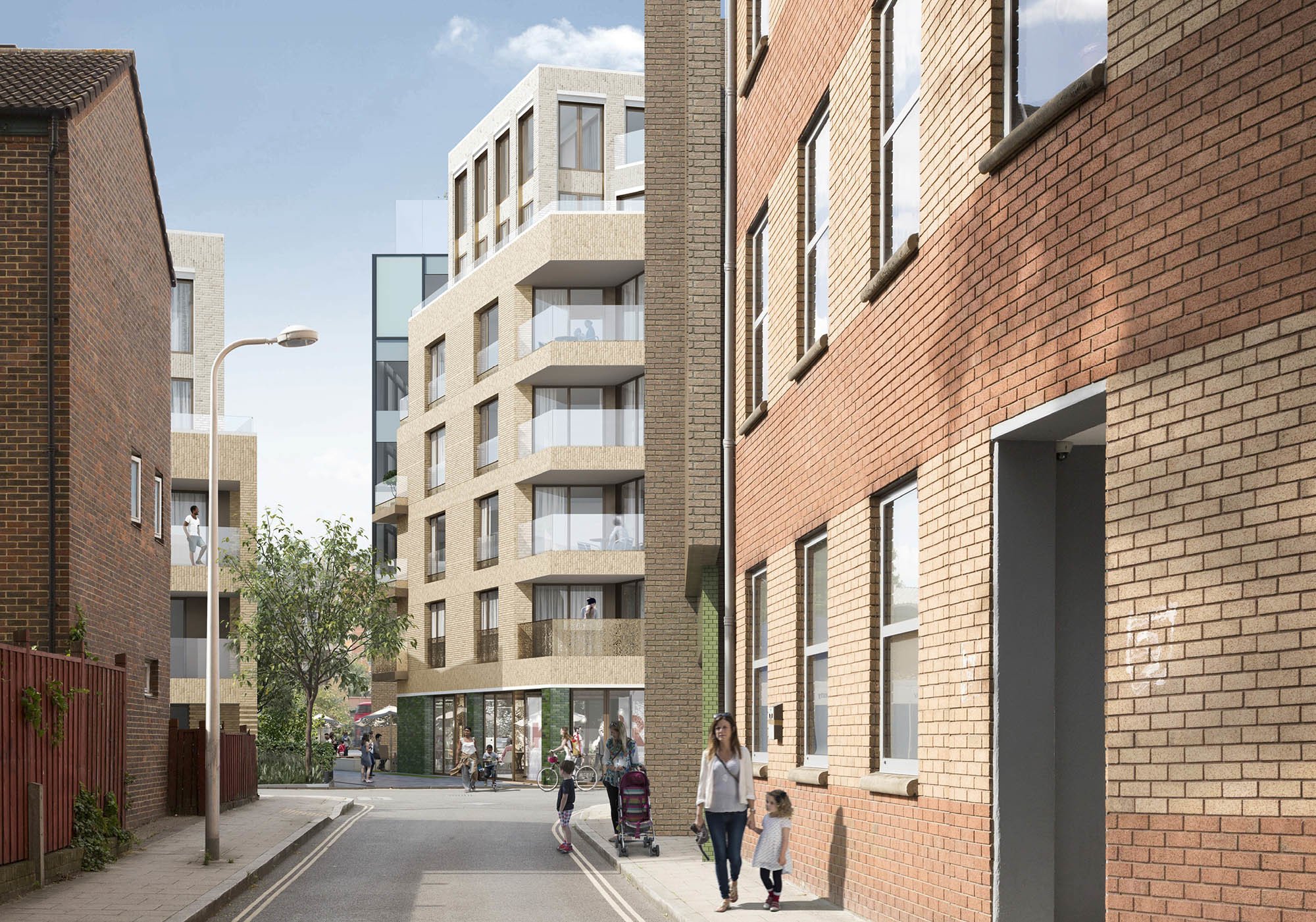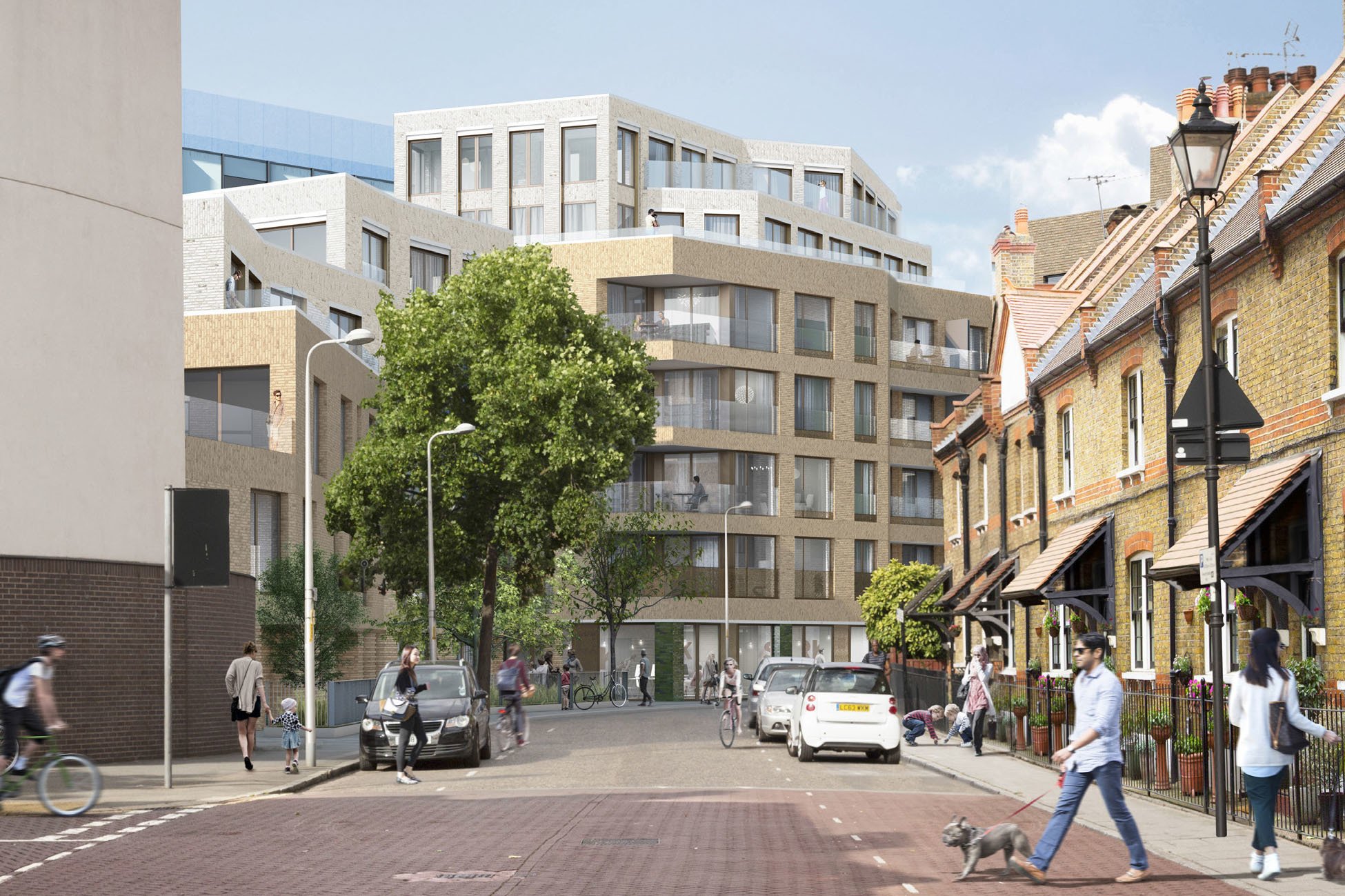 The design will create a varied street with front doors and shop fronts, while duplexes pick up on the local precedent of Georgian townhouses with secluded gardens. In total 62 new homes are provided, 35 per cent of which will be for affordable housing, while over 10 per cent are wheelchair accessible.